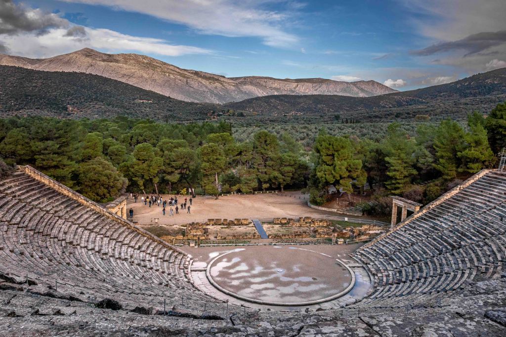 Leider sind wir ein paar Jahre zu spät: Epídauros war über Jahrhunderte hinweg eine mondäne Kur- und Kultstätte, die dem Asklepios geweiht war. Zur Heilung der Kranken gehörten Hypnose, Thermalbäder, Entspannung und Theateraufführungen. Der Besuch erfolgte nach einem strengen Ritual: Zuerst eine kultische Reinigung, nach einer Opfergabe an Apollon legten sich die Patienten schlafen und im Traum zeigte ihnen der Gott den individuellen Weg der Heilung auf. Wäre auch jetzt noch ein guter Plan für die Kurkliniken. Die Attraktion ist das 2300 Jahre alte Theater, in dem auch heute noch im Sommer bis zu 14 000 Zuschauer den Festspielen lauschen können. Aufgeführt werden ausschließlich antike griechische Dramatiker.