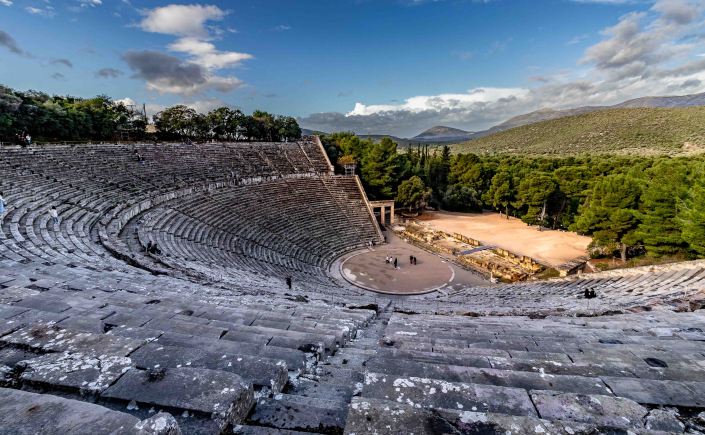 Leider sind wir ein paar Jahre zu spät: Epídauros war über Jahrhunderte hinweg eine mondäne Kur- und Kultstätte, die dem Asklepios geweiht war. Zur Heilung der Kranken gehörten Hypnose, Thermalbäder, Entspannung und Theateraufführungen. Der Besuch erfolgte nach einem strengen Ritual: Zuerst eine kultische Reinigung, nach einer Opfergabe an Apollon legten sich die Patienten schlafen und im Traum zeigte ihnen der Gott den individuellen Weg der Heilung auf. Wäre auch jetzt noch ein guter Plan für die Kurkliniken. Die Attraktion ist das 2300 Jahre alte Theater, in dem auch heute noch im Sommer bis zu 14 000 Zuschauer den Festspielen lauschen können. Aufgeführt werden ausschließlich antike griechische Dramatiker.