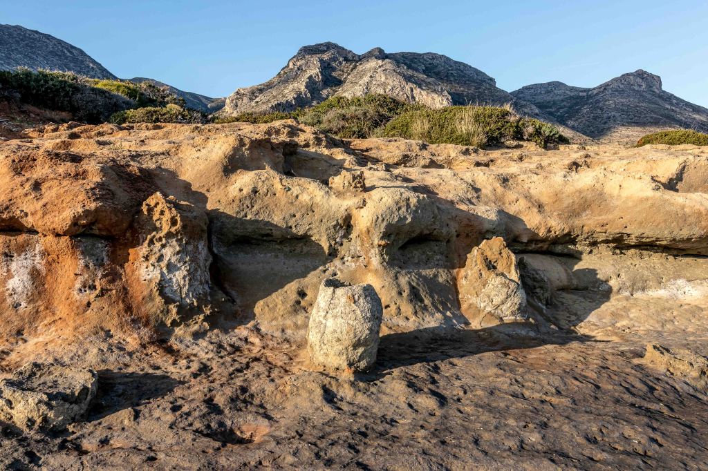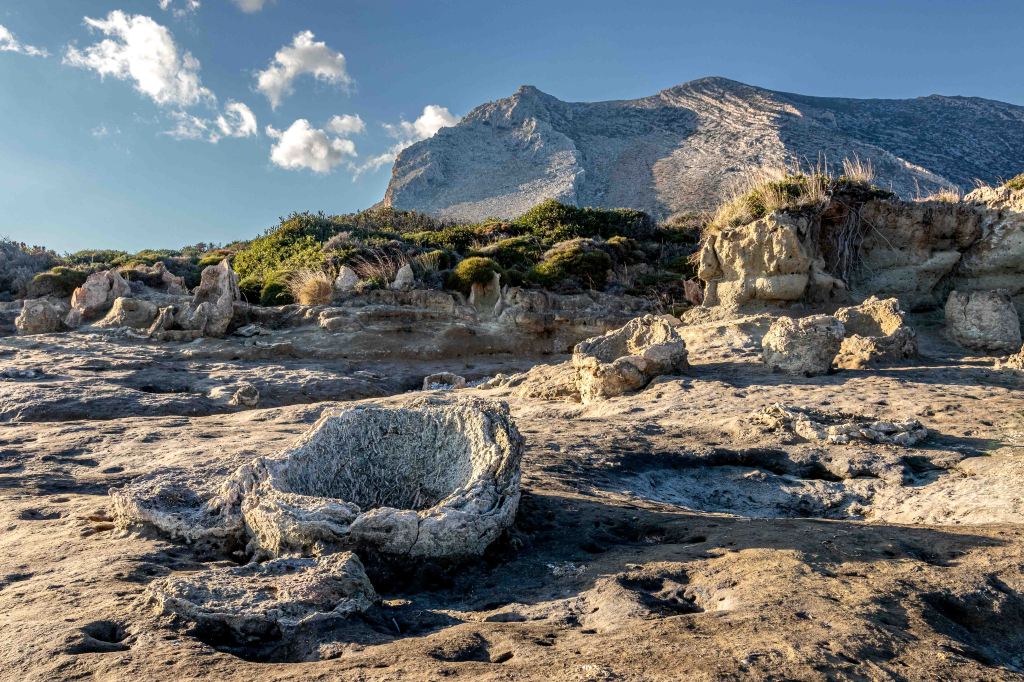 Das südliche Ende Lakoniens, quasi der Zeigefinger, wir zunehmend rauer. Den Abschluss bildet das Kap Maléas, oft windumtost. So wurde es auch dem griechischen Helden Odysseus zum Verhängnis, den ein Sturm überraschte und irgendwo an die afrikanische Mittelmeerküste verschlug. So musste Penelope weiter auf ihren Gatten warten.