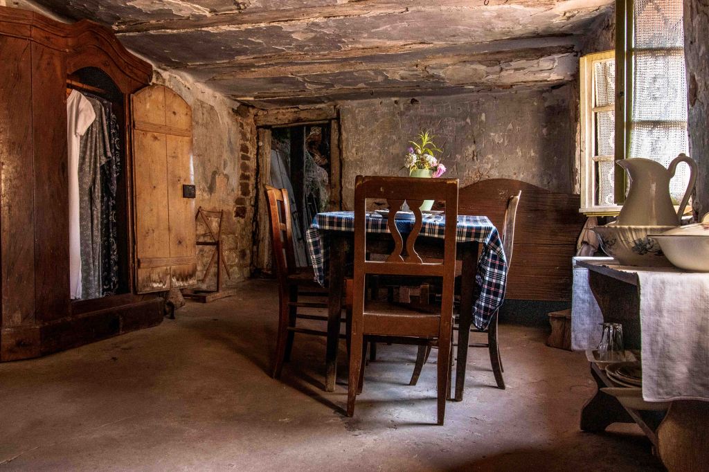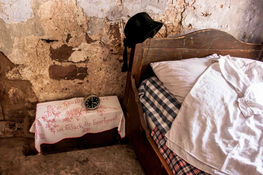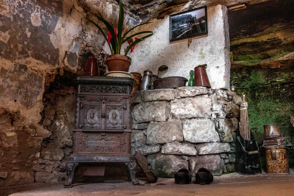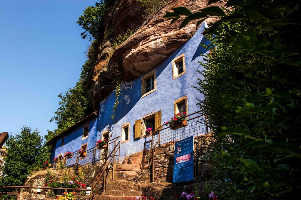 Das kleine Dorf Graufthal überragen mächtige Buntsandsteinfelsen. Im Mittelalter nutzten die Nonnen des nahen Klosters die kleinen Höhlen als Lagerräume. Später baute man eine Mauer davor und Menschen zogen in die Wohnung ein. Die letzte Bewohnerin war Catherine Ostermann, genannt Felsnkät, die 1958 verstarb. Den Besuchern erzählte die allseits beliebte Dame ihre Lebensgeschichte, angereichert mit zahlreichen Anekdoten. Heute schließt uns eine ebenfalls ältere Dame die Felsenwohnung auf, die ein kleines Museum beherbergt. Die Räume sind liebevoll mit altem Hausrat ausgestattet, so dass sie trotz der ärmlichen Verhältnisse wohnlich wirken.