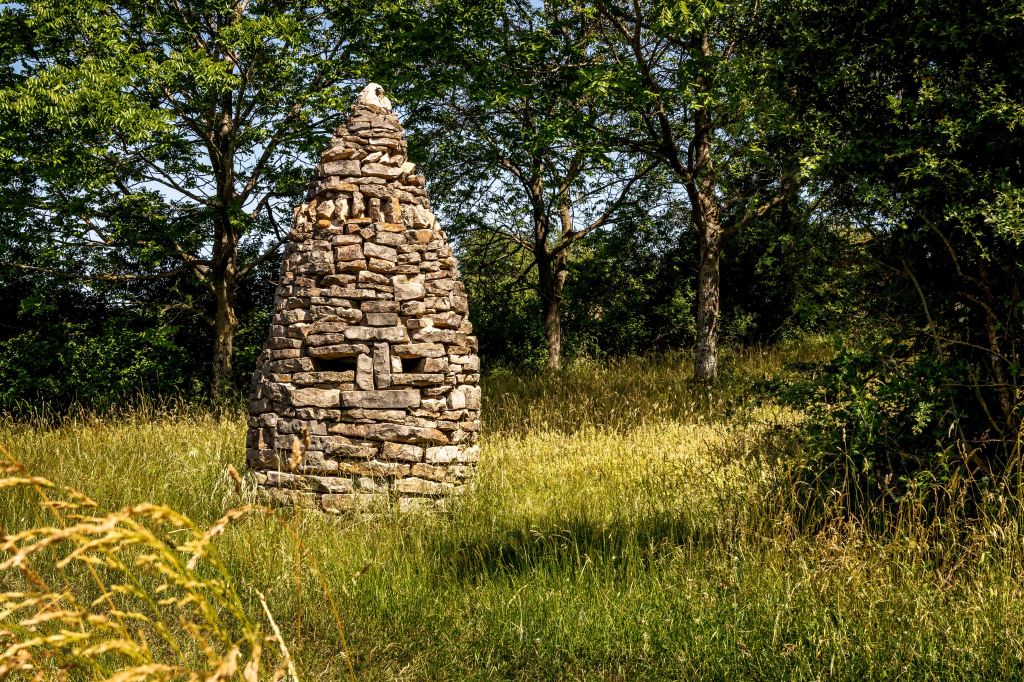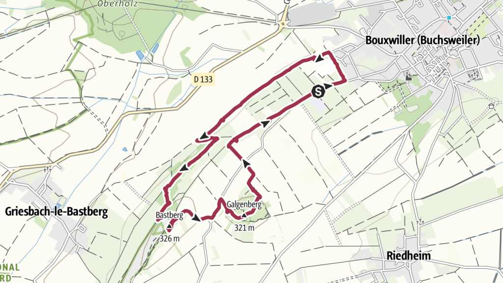 Der Bastberg ist gerade einmal 326 Meter hoch. Obwohl er zu den Vogesen zählt, steht er doch alleine in der Ebene zum Rhein. Auch besteht er nicht aus Buntsandstein, sonders aus bis zu 245 Mio. Jahren alten Muschelkalk. Ein kleiner Rundwanderweg führt vorbei an Kunstwerken, sogenannten Chorten, die aus den unterschiedlichen, hier vorkommenden Steinarten aufgeschichtet sind.