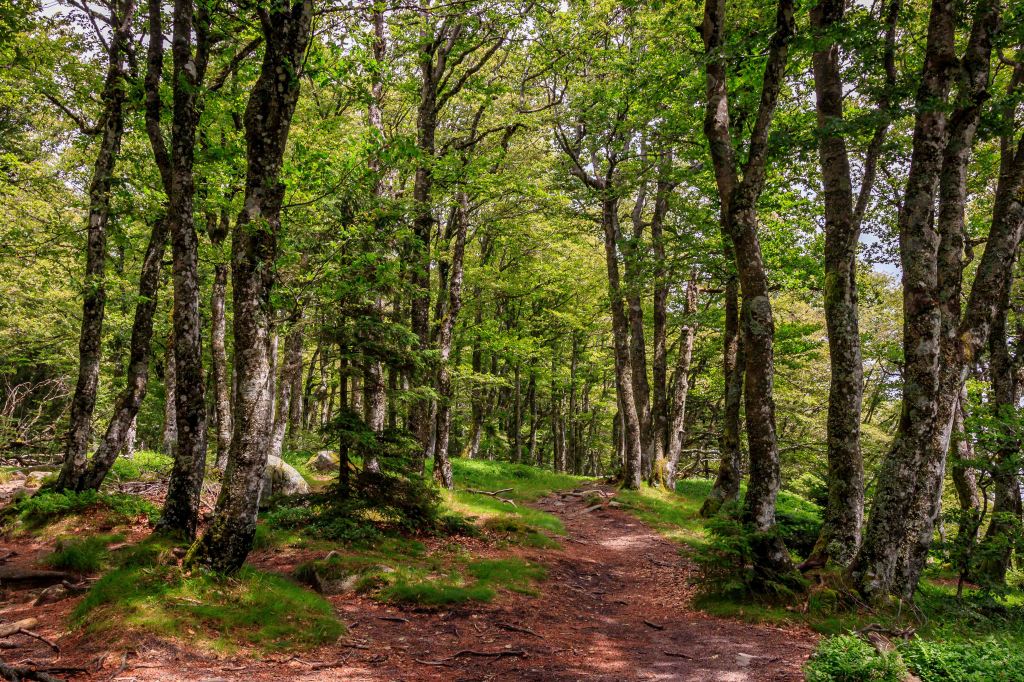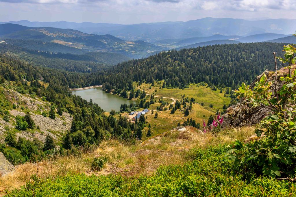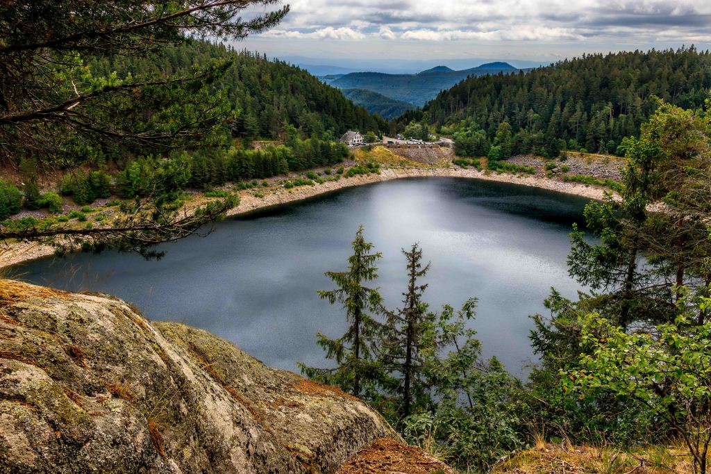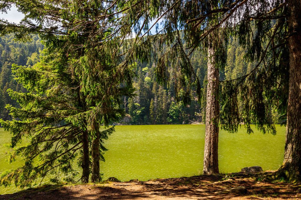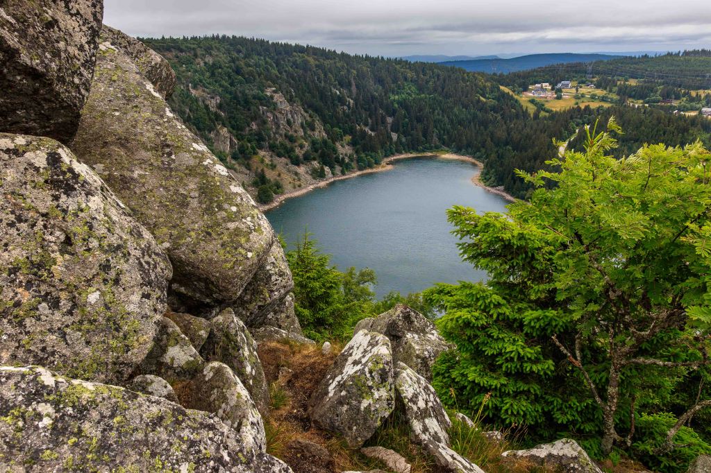 Die Sonne scheint wieder und trotzdem bleibt es hier auf über 1100 m über N.N. angenehm frisch, bestes Wanderwetter. So bleiben wir noch ein paar Tage in der Region der drei „farbigen“ Seen: Lac Blanc, Lac Noir, und Lac Vert sowie dem Lac du Forlet. (Der Schwarze und der Grüne See machen ihren Namen alle Ehre, doch der Weiße bleibt schwarz.) Auf zwei Touren im ständigen Auf und Ab über etwa 25 km und 1000 Höhenmetern , lässt sich die abwechslungsreiche Landschaft gut erkunden. Die glitzernden Seen, die aussichtsreiche Hochfläche (früher die Grenze zwischen Deutschland und Frankreich, nun die zwischen dem Elsass und Lothringen) und schattigen Wälder sind ein Genuss für das Auge und das Wanderherz.