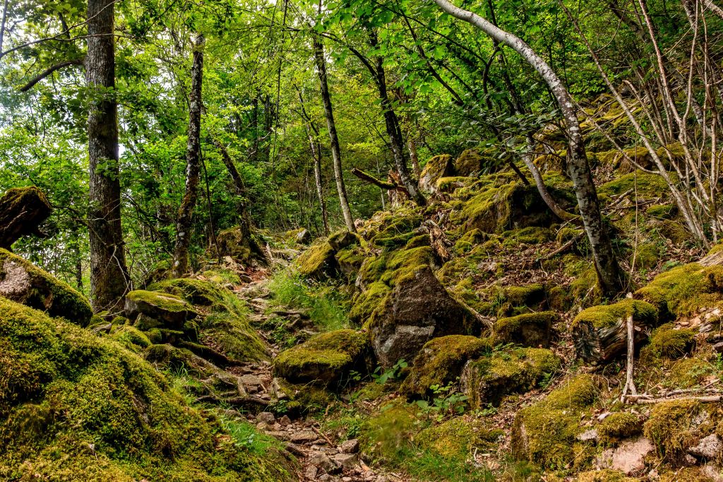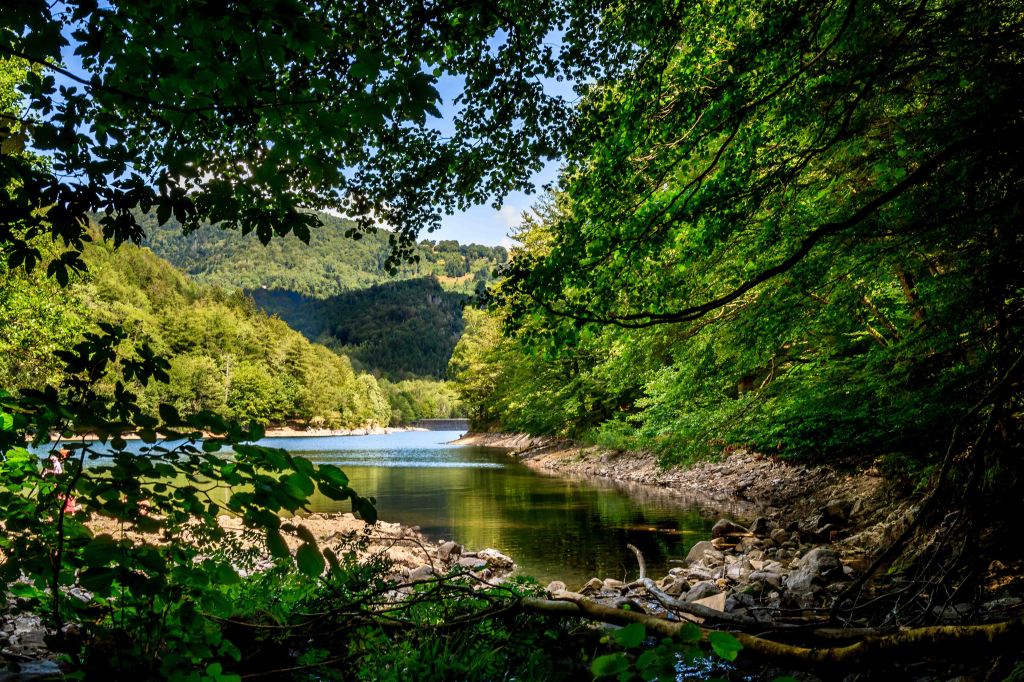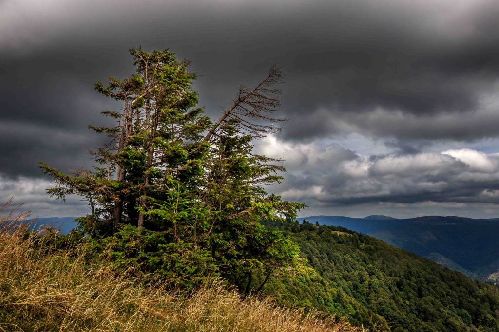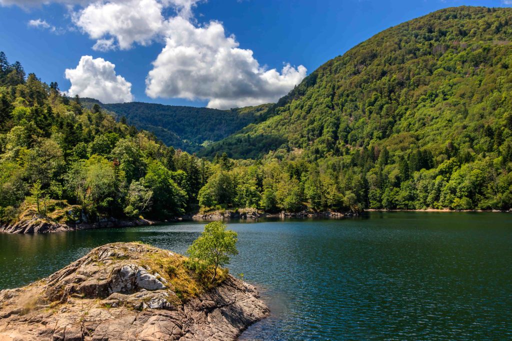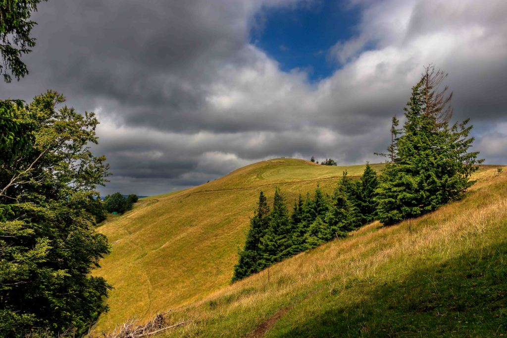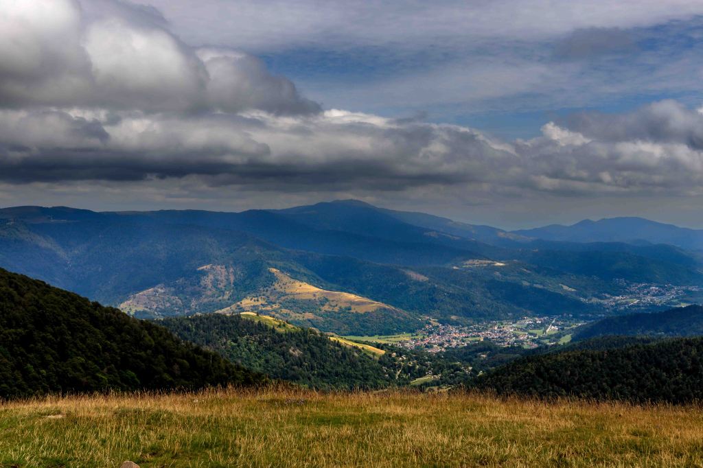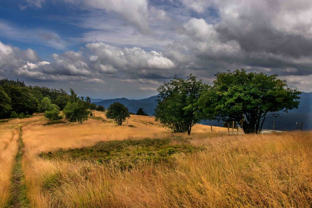 Etwas unterhalb des Ballon d’Alsac finden wir einen letzten Übernachtungsplatz. Schnell ist der 1248 m hohe Berg erklommen, bevor der Steig durch wunderschönen 600m Höhenmeter hinunter zum Lac d’Alfeld führt. Das klare und recht warme Wasser des Stausees kühlt zumindest ein wenig. Doch im Aufstieg, natürlich wieder 600 m hinauf, rinnt wieder der Schweiß in der schwülen Luft.