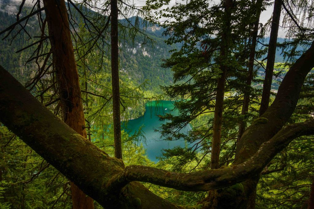 Da es noch früh am Tag ist, steigen wir zu Fuß auf. Auf dem breiten Hochbahnweg, der Königsee lässt sich durch den Wald immer einmal blicken, erreichen wir die Königsbachalm und rasten erst einaml. Die Sulze mit Bratkartoffeln schmeckt hervorragend.