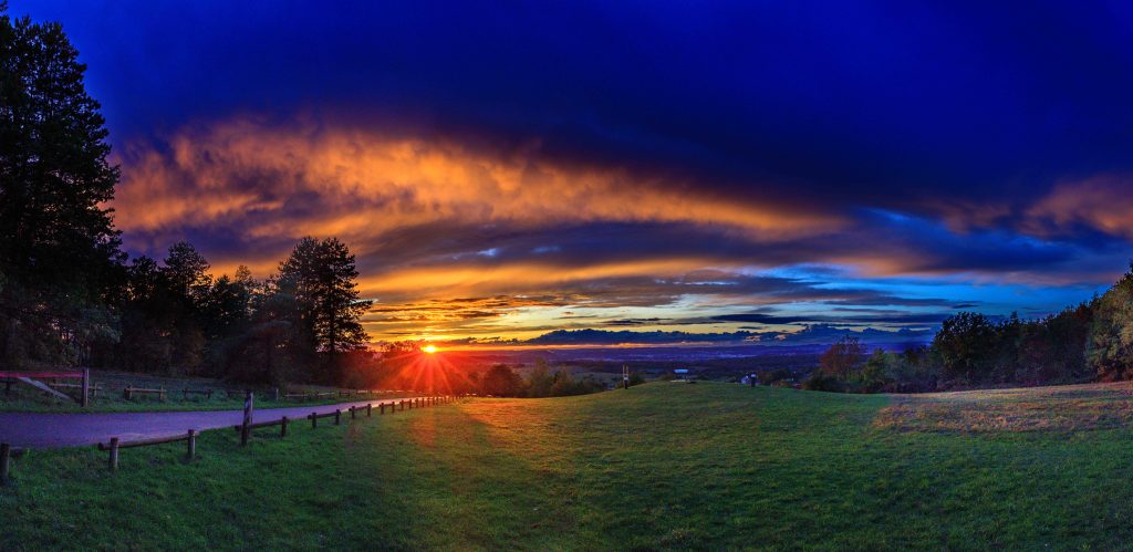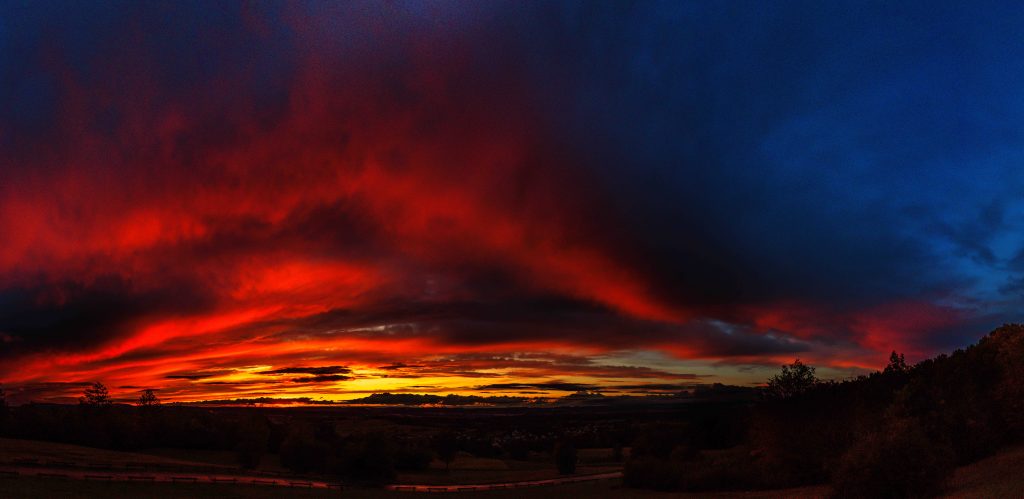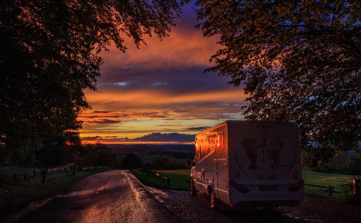 Oberhalb des Dorfes Vandoncourt können wir auf einem Wanderparkplatz mit tollem Ausblick den Tag über stehen und übernachten. Das launische Wetter beschert uns einen farbenfrohen und abwechslungsreichen Wolken- und Lichtzauber.