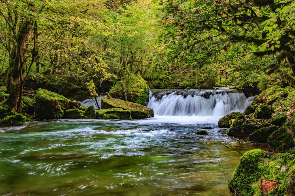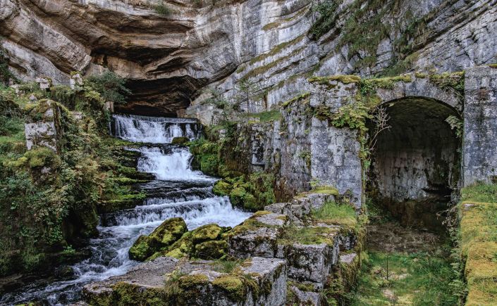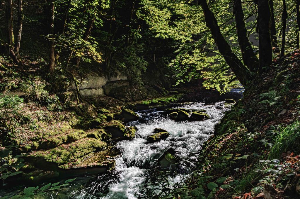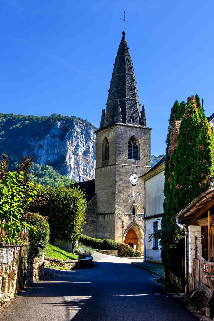 Doch noch nicht genug des Staunens: Die Loue zwängt sich, ungehindert von einem Staudamm, durch die enge Gorges de Nouailles und springt dabei munter über allerlei kleinere und größere Felsen. Am Ende der Wanderung, bevor es 400 steile Höhenmeter zu unserem Parkplatz zu erklimmen gilt, liegt das beschauliche Dorf Mouthier-Haute-Pierre.