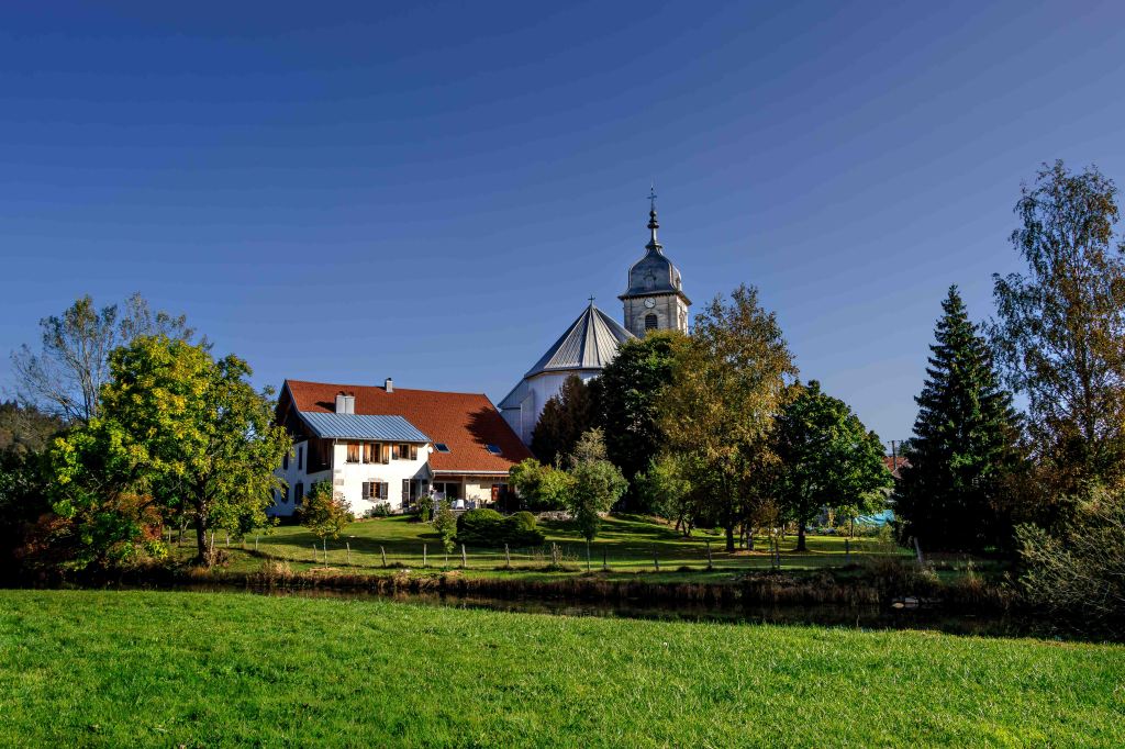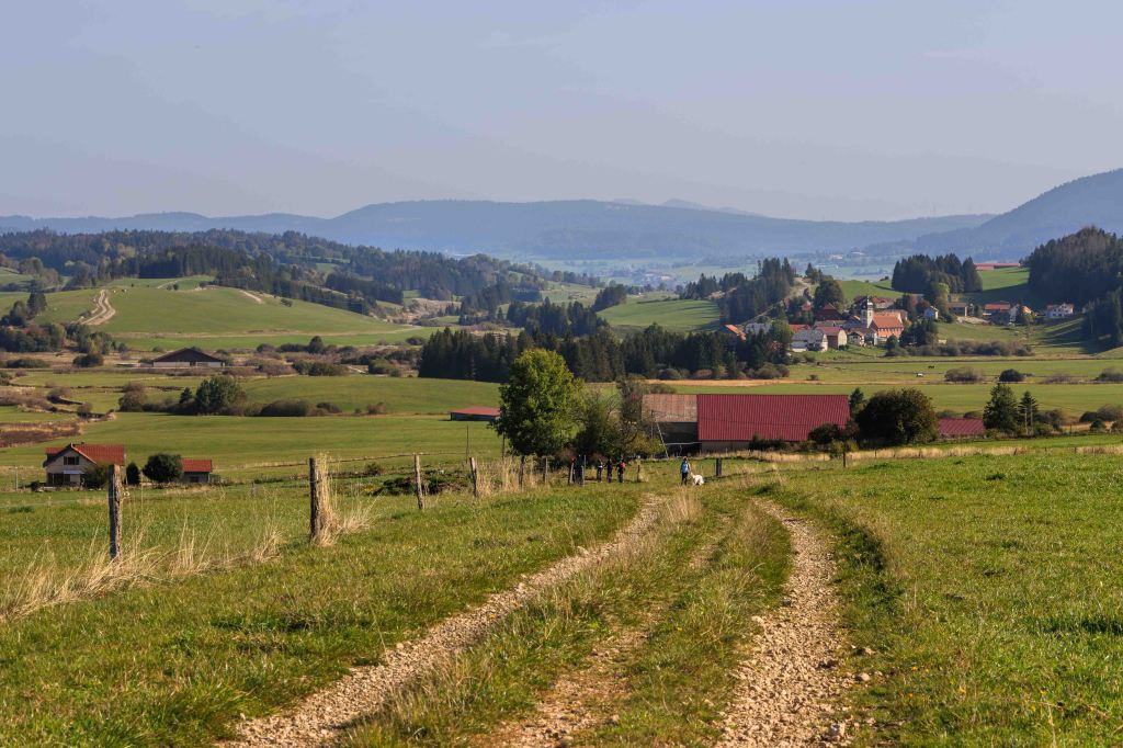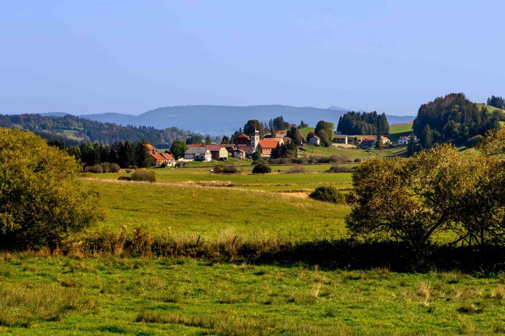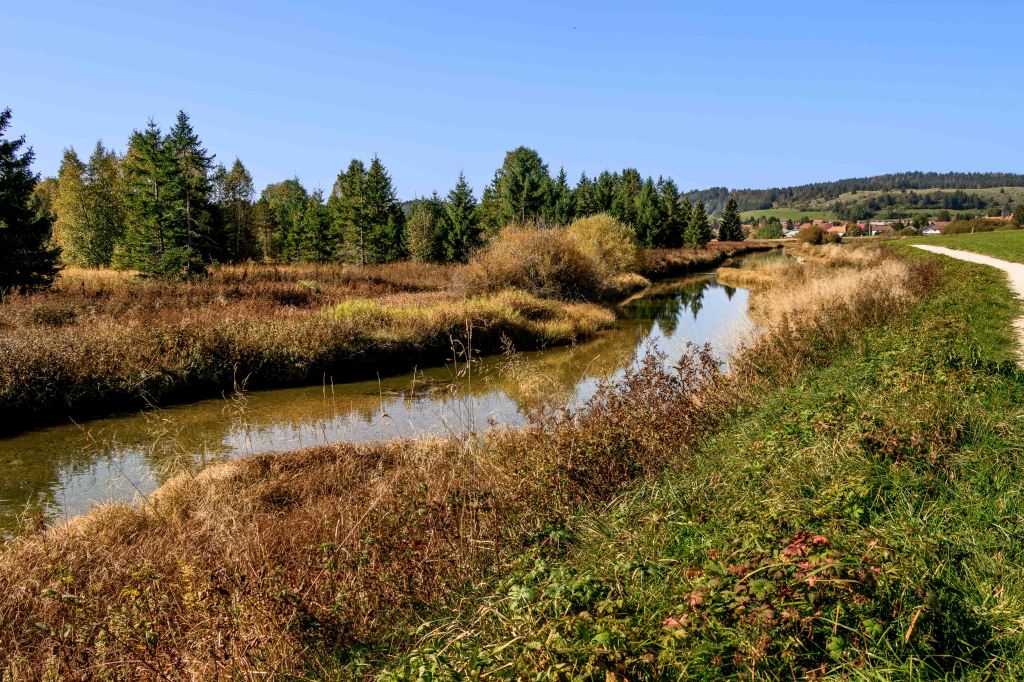 Und natürlich müssen wir dem Doubs, dem wesentlichen Gestalter dieser wunderschönen Landschaft unsere Referenz erweisen: Nahe der Ortschaft Mouthe entspringt er auf 937 m am Fuße einer knapp 1500 hohen Bergkette. Die Quelle schüttet durchschnittlich 1700 Liter pro Sekunde, nur leider jetzt nicht, und ist Ausgang eines komplexen Höhlensystems. Nachdem er munter der Unterwelt entsprungen ist, fließt der Doubs gemächlich über die weite Hochfläche nach Norden.