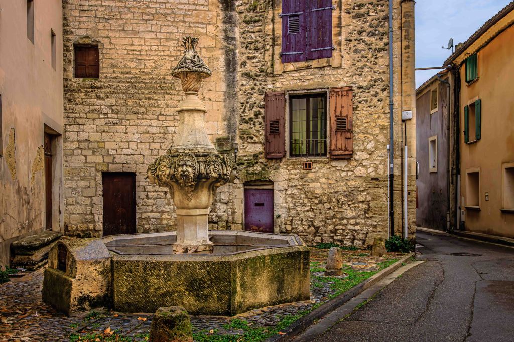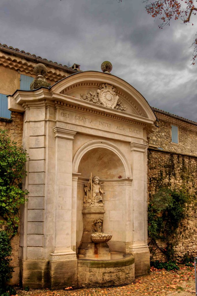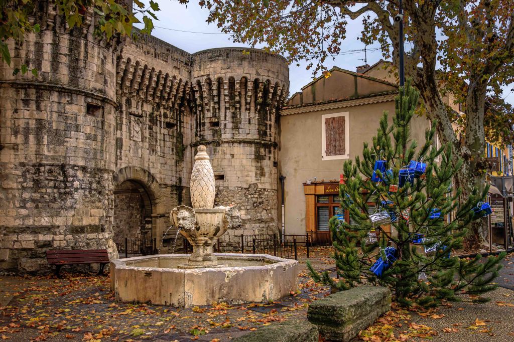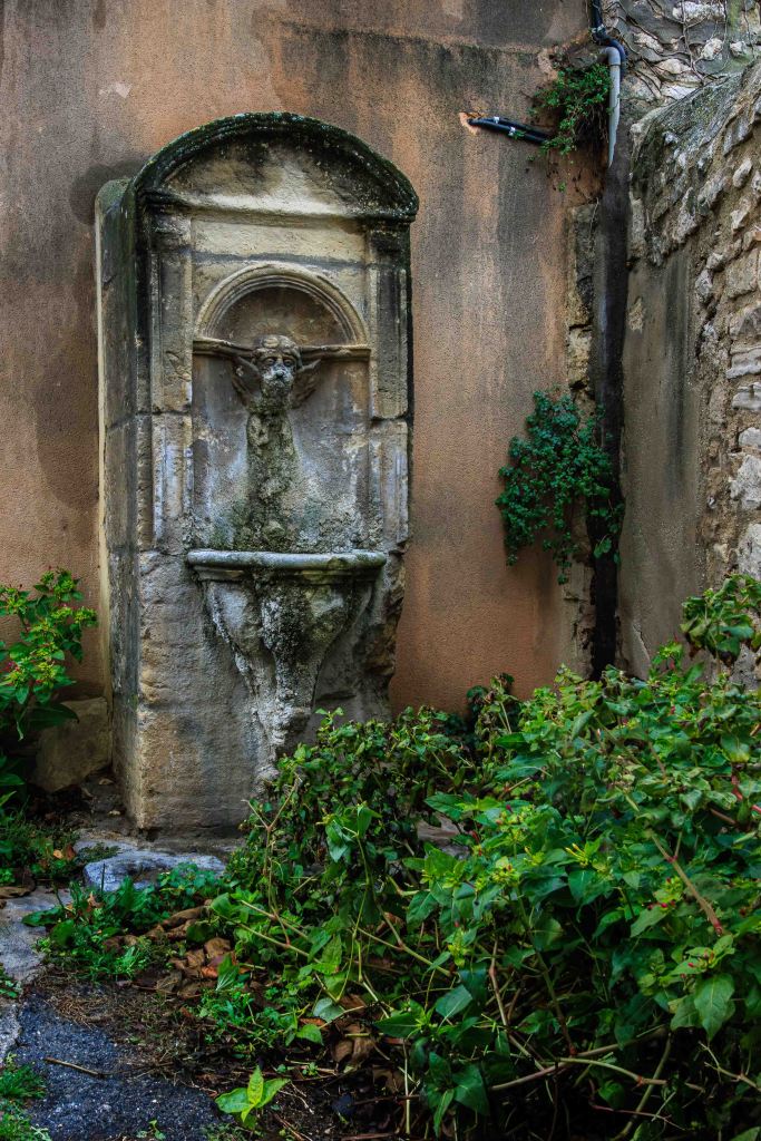 Wir folgen dem Flüsschen Nesque und kommen in die Stadt der Brunnen: Pernes-les-Fontaines. Vierzig Stück sollen es sein. Alle wurden sie im 18. Jahrhundert erbaut, nachdem der Stadtbaumeister ein neue Grundwasserquelle erschlossen hatte. Obwohl ich wirklich alle Gassen der malerischen Altstadt ablaufe, entdecke ich nur gut zwei Dutzend. Manche sind prächtig, einer bekommt einen neuen Fußboden, ein anderer, etwas schlichter, steht etwas abseits in der Ecke. Einem Wasserspeier haben sie ein Baugerüst auf den Kopf gelegt, einer hat vom kalkigen Wasser einen weißen Bart bekommen. Prächtig ist das Porte Notre Dame mit den zwei Rundtürmen und einer Kapelle auf der Brücke.