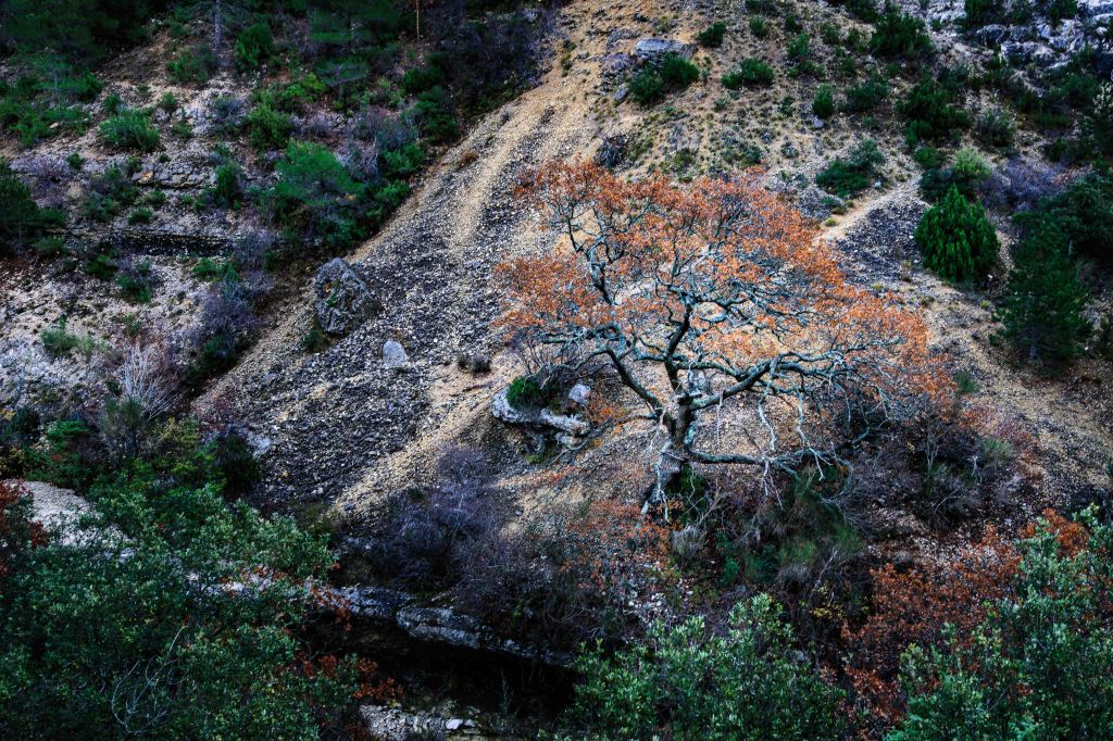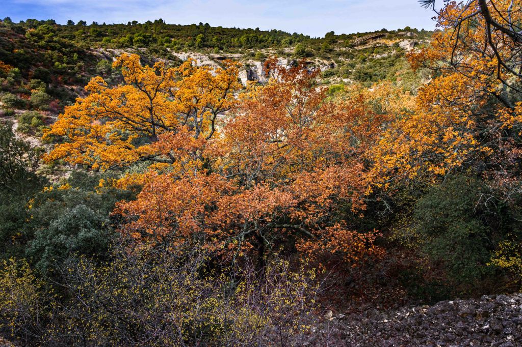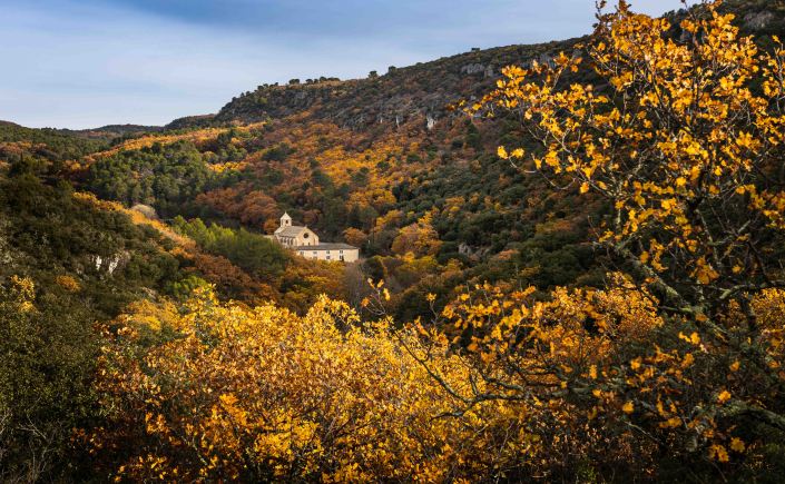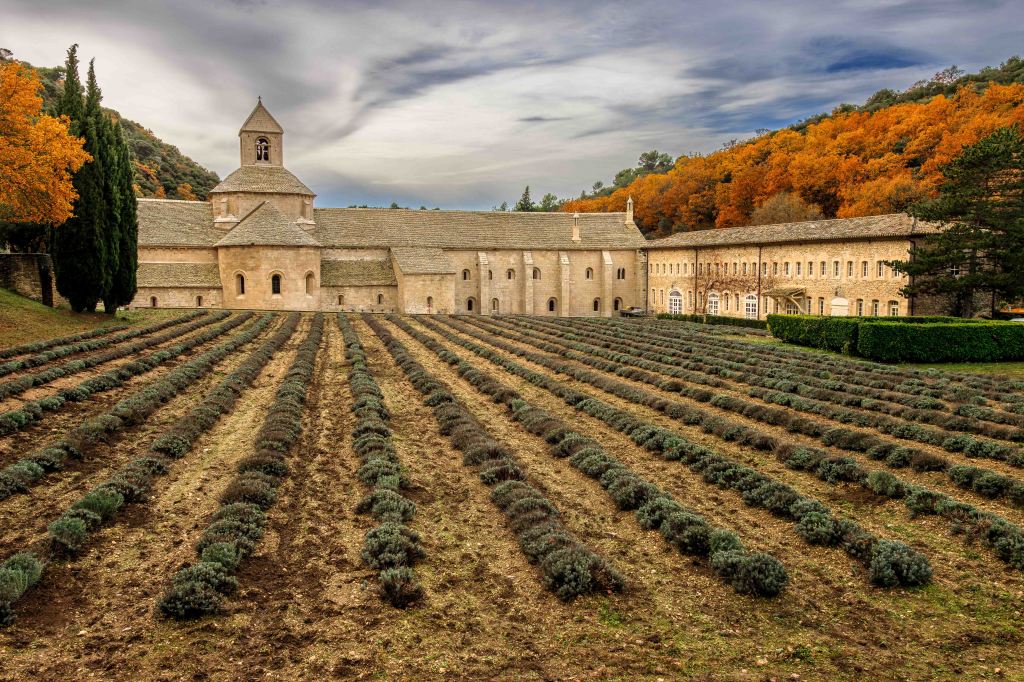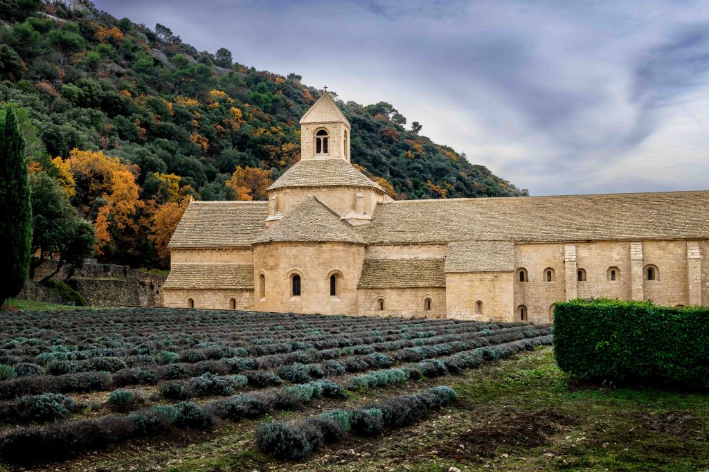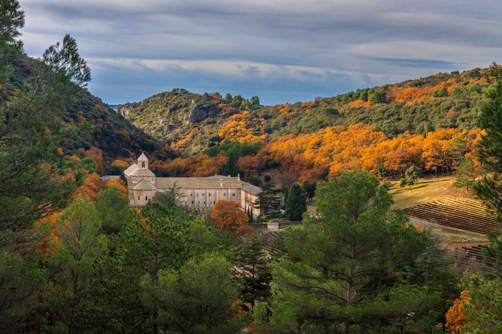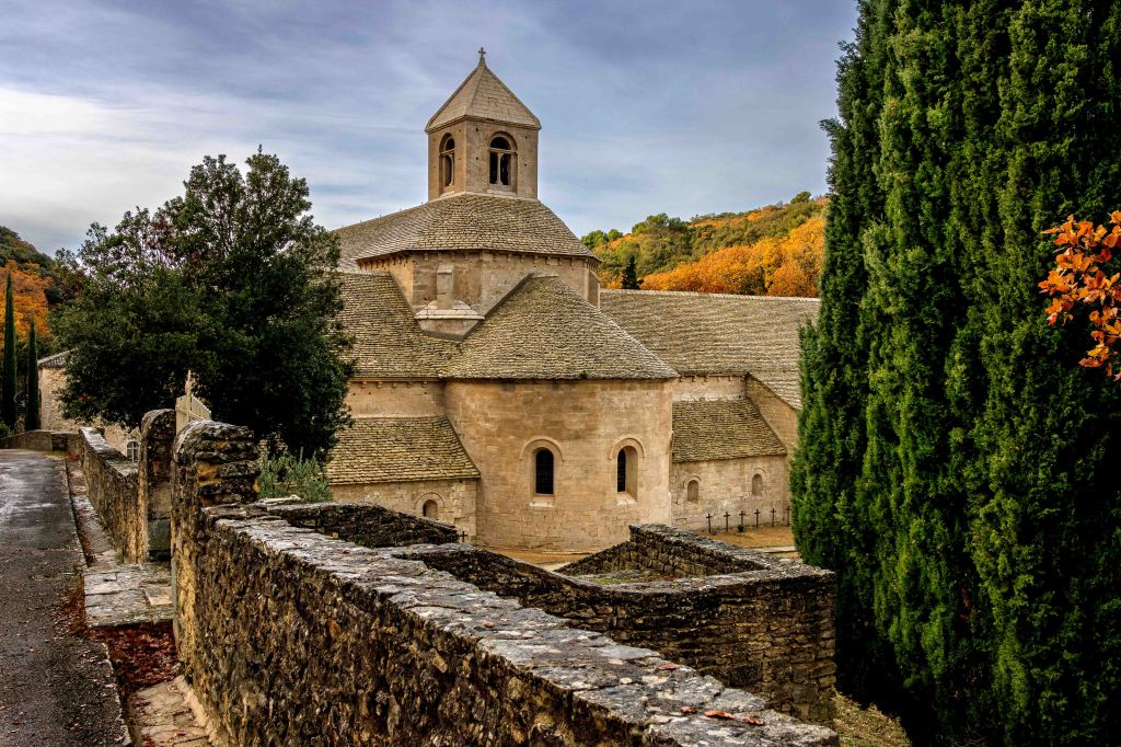 Es ziert fast jeden Reiseführer und ist wohl das meist fotografierte Motiv der Provence: die Abbaye Notre Dame de Sénanque. Malerisch und einsam liegt das schlichte Zisterzienser-Kloster im Tal der Sénancole, einem Bach der jetzt nur noch ein Rinnsal ist, doch eine tiefe Schlucht geschaffen hat. Leider fehlt zu dieser Jahreszeit der blau blühende Lavendel, aber die herbstlichen Farben sind auch sehr stimmungsvoll. Und wir sind alleine hier.