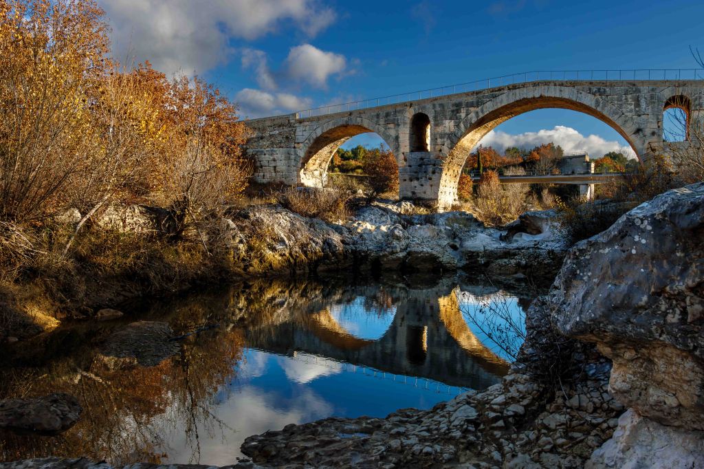 Die elegante römische Pont Julien ist schon 2000 Jahre alt und bis vor wenigen Jahren rollte über sie noch der Verkehr der D 108. Heutige Brücken müssen da schon nach einigen Jahren repariert werden.