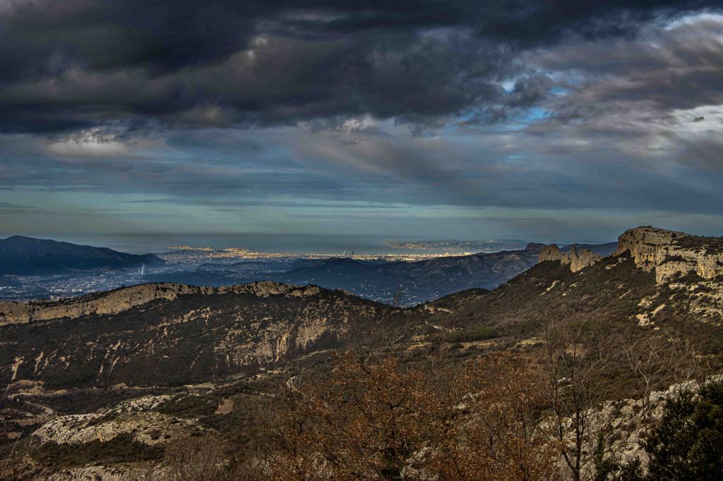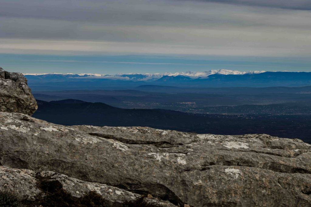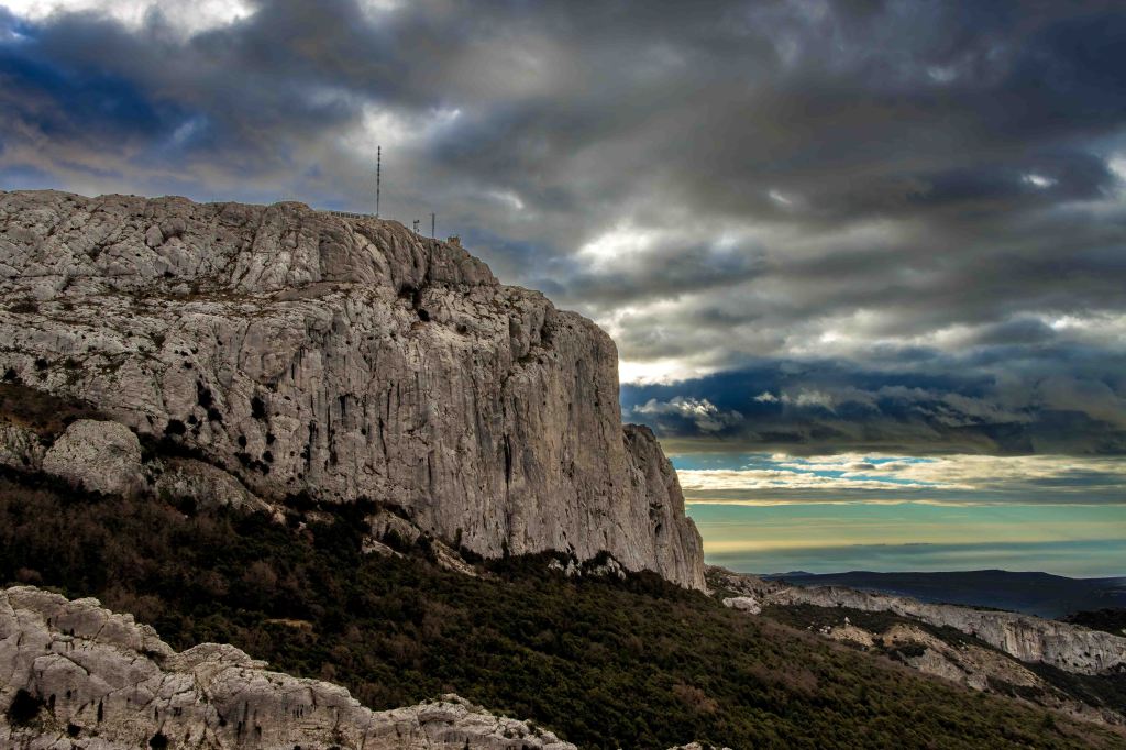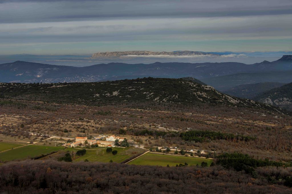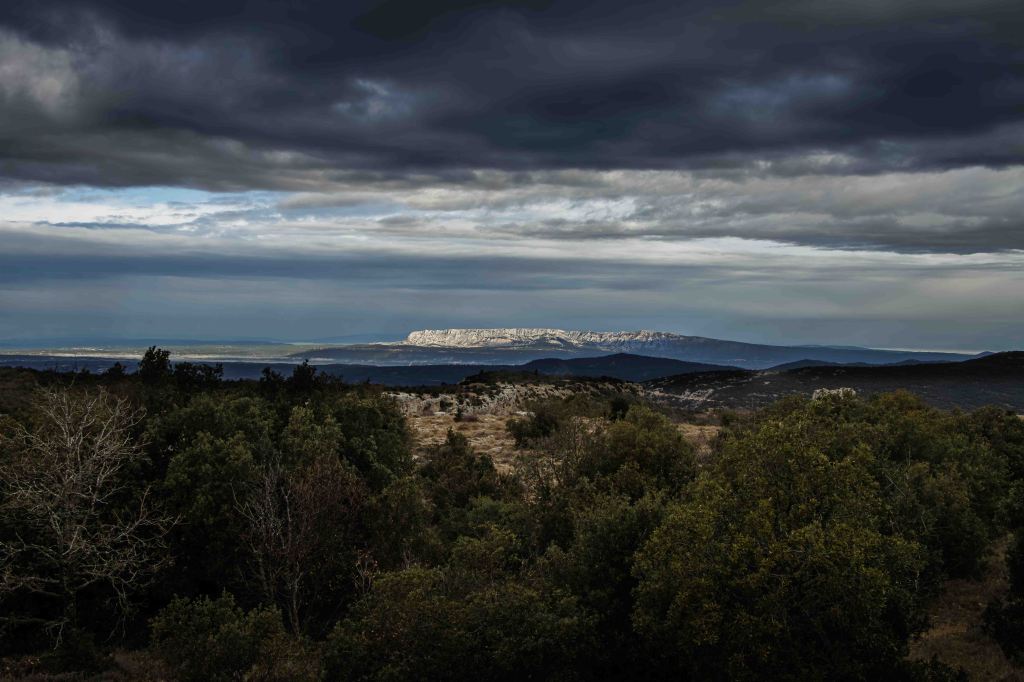 Und wieder reicht der Blick weit. Das Mittelmeer, Marseille, die schneebedeckten Gipfel der Alpen und die wunderbare Montagne Sainte-Victoire sind zu sehen. Aus der Ferne betrachtet entfaltet sie ihre ganze Schönheit.
