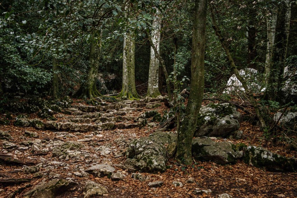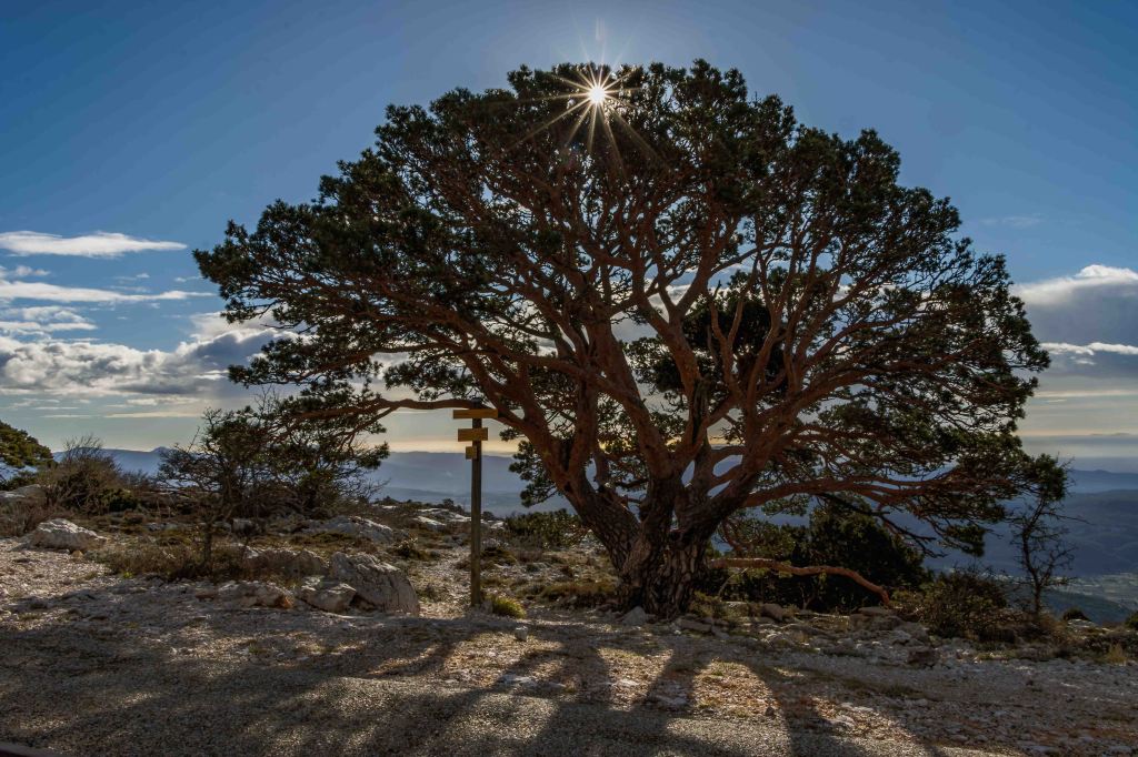 Wie schon die Montagne Sainte-Victoire ragen auch die Felsen des Massif de la Sainte-Baume weit über die Bäumgrenze hinaus. Schon vor einigen Tagen sahen wir von Weitem die steil abfallende Felswand des Pic de Bertagne, den westlichen Eckpfeiler des Gebirgszugs. In der Mitte des Felsenriegels erhebt sich der Saint-Pilon, gekrönt von einer Kapelle. Den weiteren Weg entlang des Grates zum nahen Jouc de l’Aigle verleidet mir der heftige und kalte Mistral. Unterhalb der steilen Felswand des Gipfels wohnte, so zumindest die Sage, Maria Magdalena während ihrer letzten 33 Lebensjahre. Im Mittelalter besuchten Päpste und Könige diese Wallfahrtsstätte, was der Gegend gute Einnahmen bescherte.