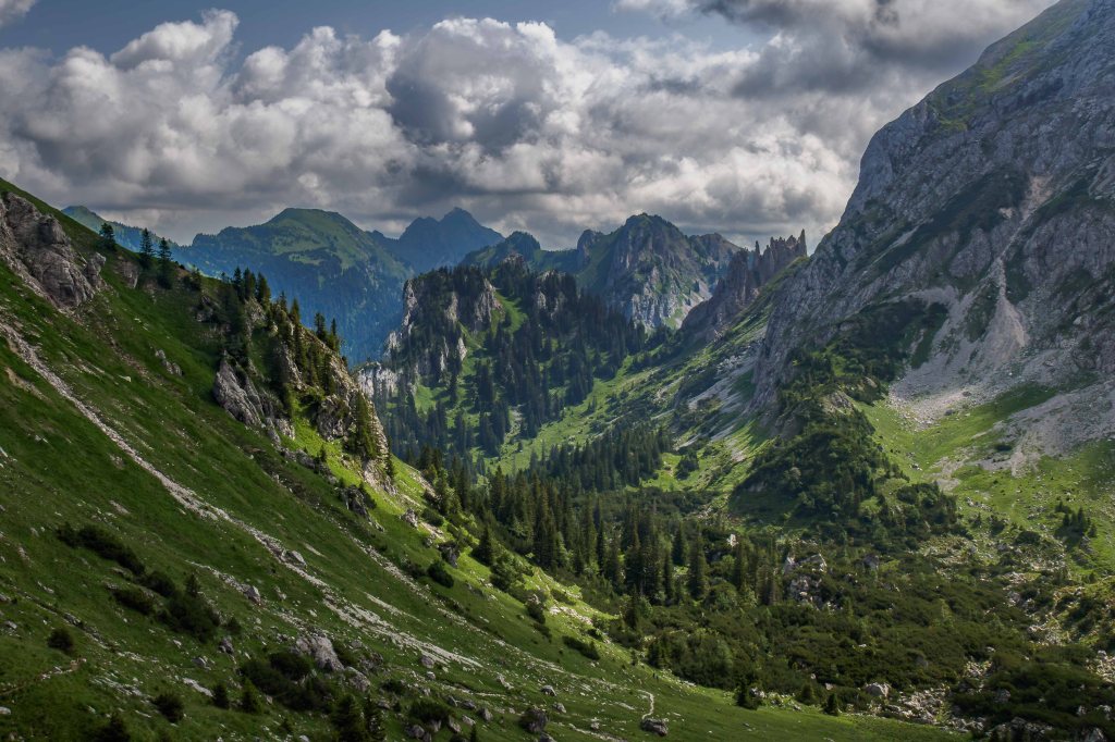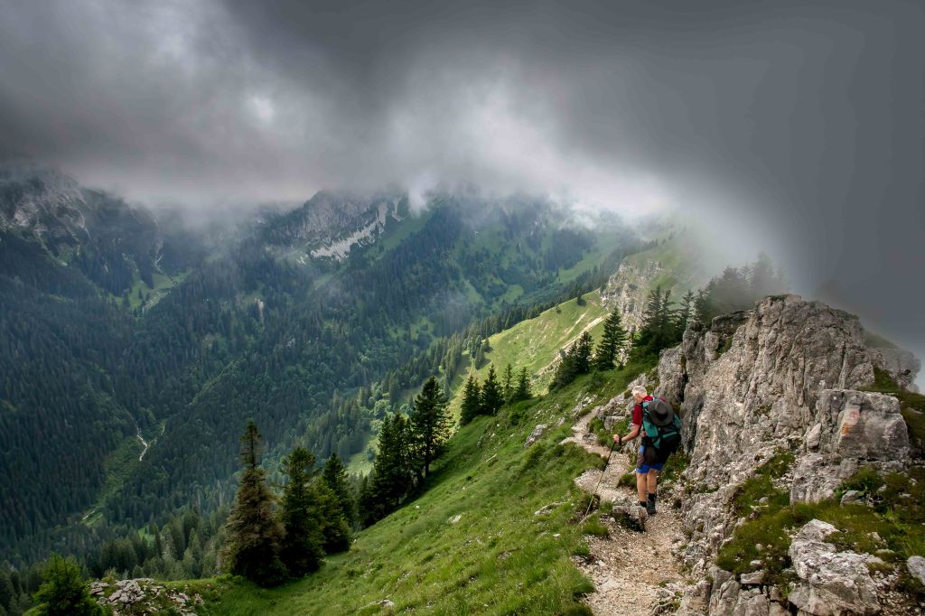Die fast schon traditionelle Wanderung steht an. Dieses Jahr bin ich wieder mit meinem langjährigen Freund Jürgen unterwegs. Die Wettervorhersagen verbreiten bei uns keinen großen Optimismus. Aber wie schon beim Gleitschirmfliegen wird auch beim Wandern das Wetter am Berg gemacht. Also starten wir trotz vorhergesagten Regen und Gewitter. Die Deutsche Bahn bringt uns pünktlich, preiswert und natürlich umweltschonend nach Oberammergau, dem Startpunkt unser sechstägigen Wanderung durch das Naturschutzgebiet des Ammergebirges. Und Petrus ist uns wohl gesonnen: Nur am ersten Tag laufen wir ein bis zwei Stunden im Nieselregen, an den nächsten Tagen bleibt das Wetter wechselhaft, aber trocken. Und ab und zu wärmt uns sogar die Sonne.