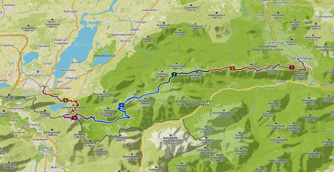 Unsere Stationen: Oberammergau – August-Schuster Haus – Brunnenkopfhäuser – Große Klammspitze – Kenzenhütte – Fritz-Putz-Hütte – Säuling – Säulinghaus – Füssen