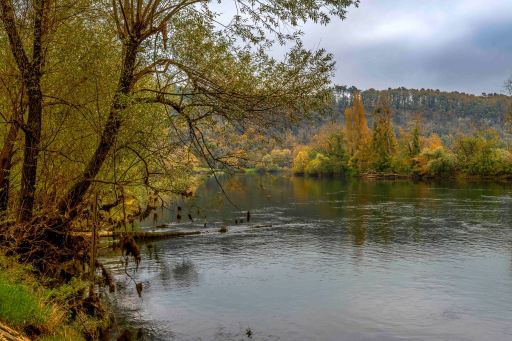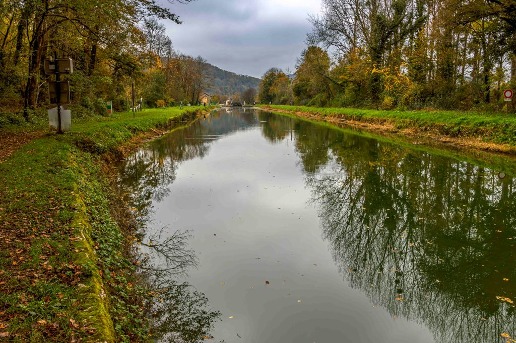 Nachdem wir uns in Ottmarsheim, meist unsere erste Übernachtungsstation in Frankreich, an einem fahrenden Stand mit einer sehr leckeren Pizza gestärkt haben fahren wir mit nur einem Zwischenstopp weiter, vorbei an Besançon ins Dörfchen Thoraise. Hier treffen wir unseren alte Bekannten, den gemächlich dahin fließenden Doubs wieder. Um es den früheren Schiffern etwas leichter zu machen, haben die Kanalbauer des Rhein-Rhône-Kanals die Flussschleife von Thoraise abgeschnitten und einen Bergvorsprung untertunnelt. Ein Spaziergang führt durch die herbstlich bunte Natur von den beiden Tunneleingängen auf die Anhöhe. Sogar ein paar Blümchen lassen sich noch blicken.