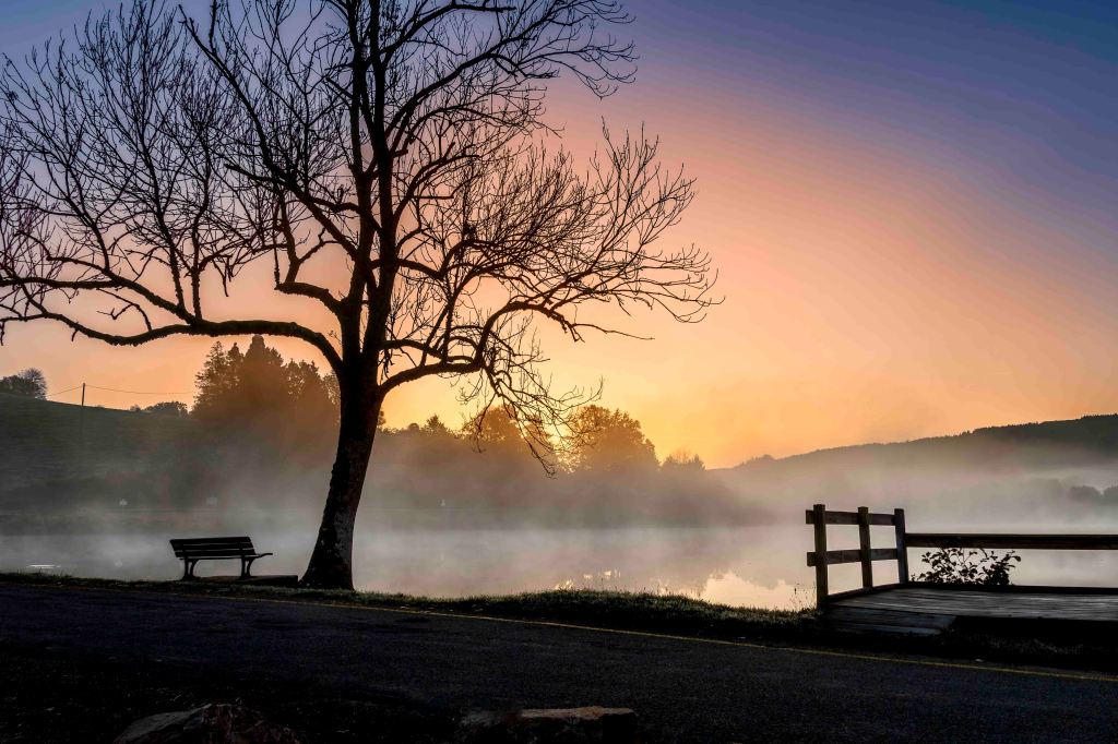 In Le Mayet-de-Montagne standen wir vor zwei Jahren schon ein paar Tage. Als wir ankommen, scheint die Sonne nur kurz durch die Wolken, dann sehen wir nicht einmal mehr das nahe Ufer. Auch am nächsten Morgen ist die Freude nur kurz, kaum hat sie den Himmel kurz leuchten lassen, versteckt sie sich hinter dicken Nebelschwaden. Also weiter fahren in den Süden.