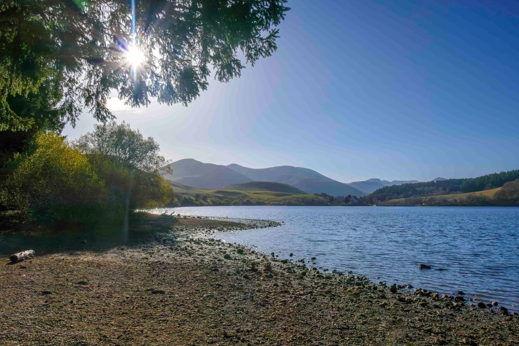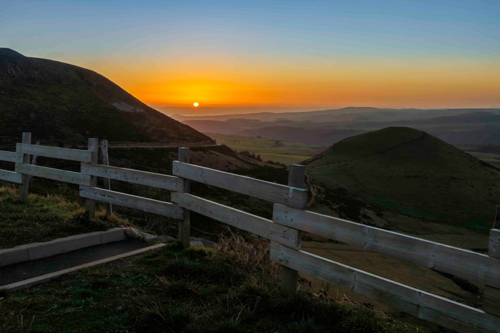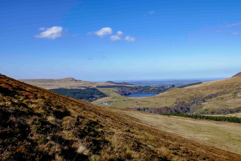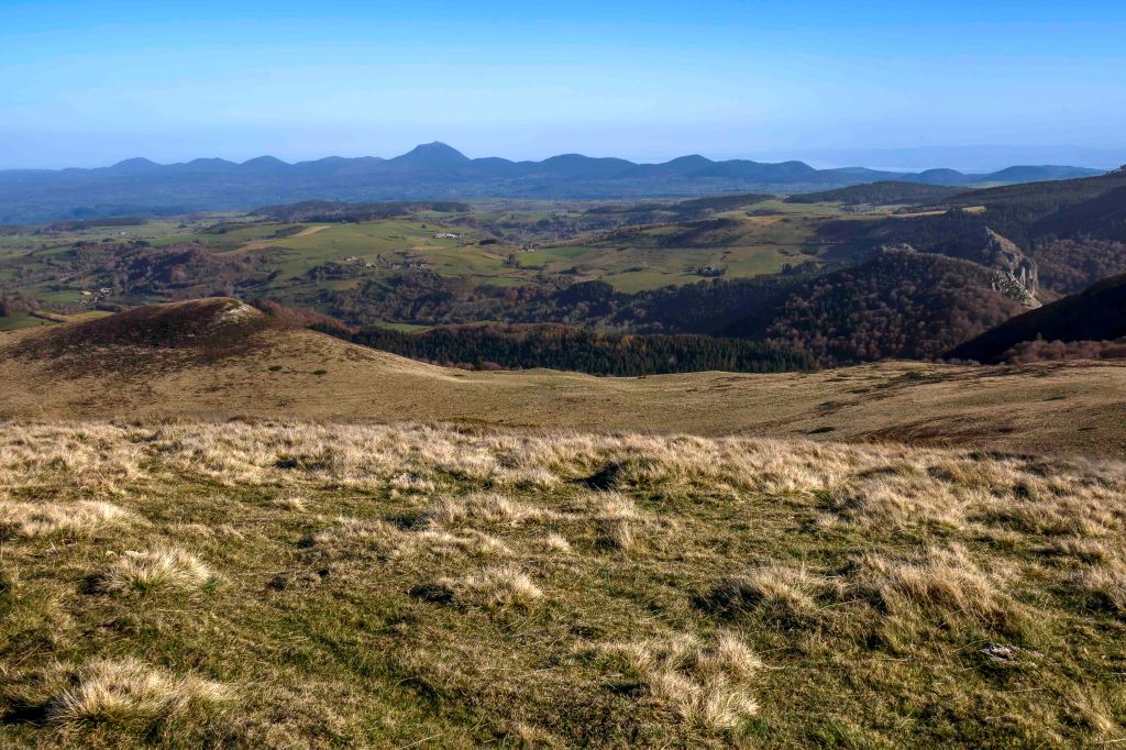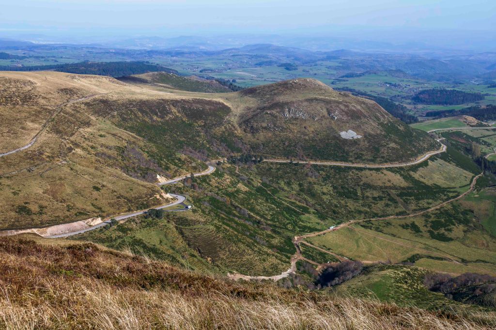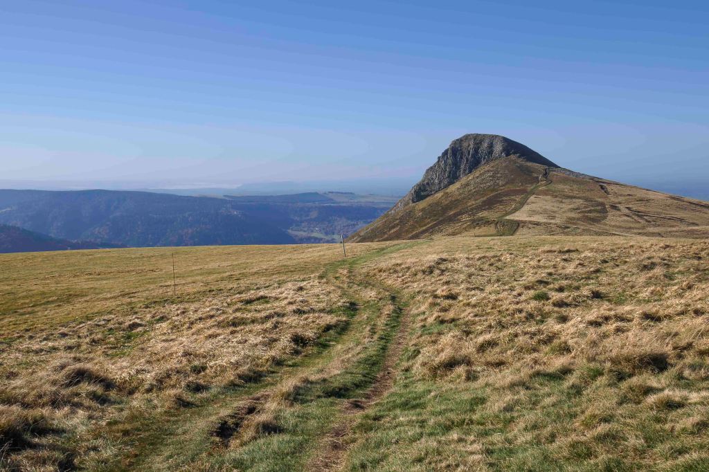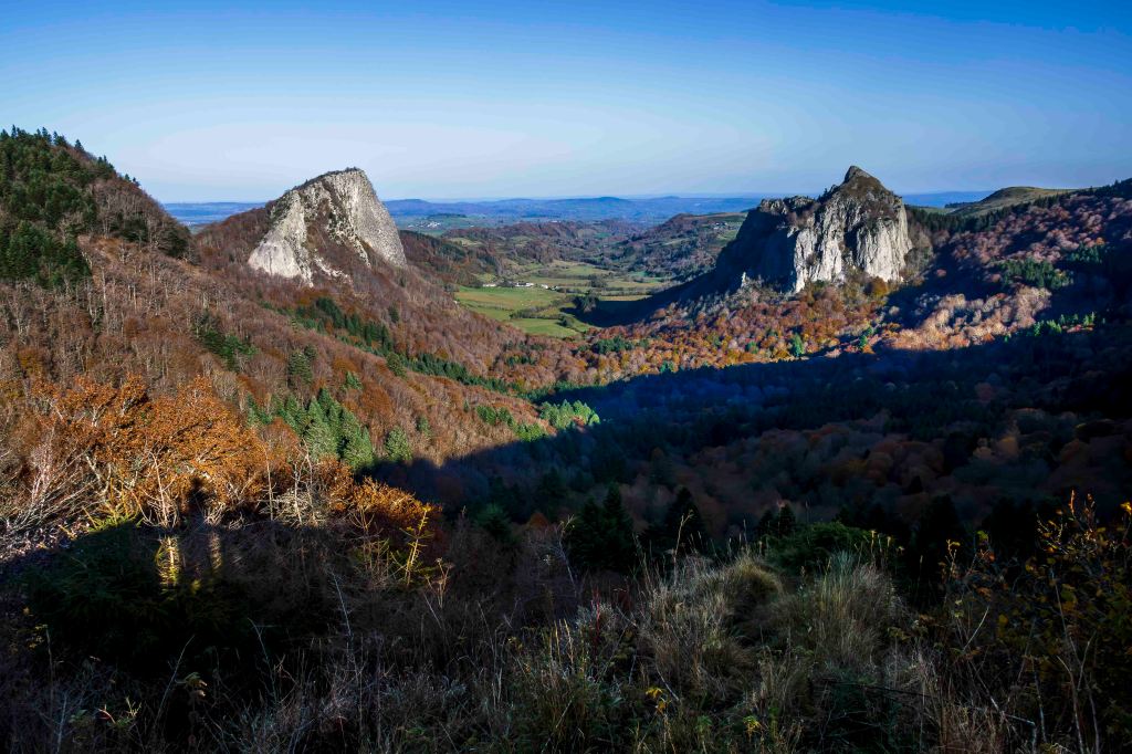 Und dann reist plötzlich der Himmel auf, vor uns nur strahlender Sonnenschein. Wir sind in der Vulkanlandschaft der Auvergne, nahe Mont-Dore, angekommen. Hier nisten wir uns auf dem Col de la Croix Morand auf 1400 m ein. Tags über klettert das Thermometer auf 20 0C, fast schon sommerlich warm. Aber es liegt die herbstliche Frisch in der Luft. Und natürlich müssen wir zum Col de Guéry. Von hier gibt es „den“ beeindruckenden Ausblick der Auvergne auf den Roche Tuillière und den Roche Sanadoire. Nur wer hier war, so heißt es, war wirklich in der Auvergne.