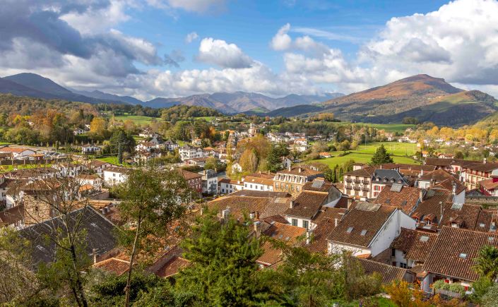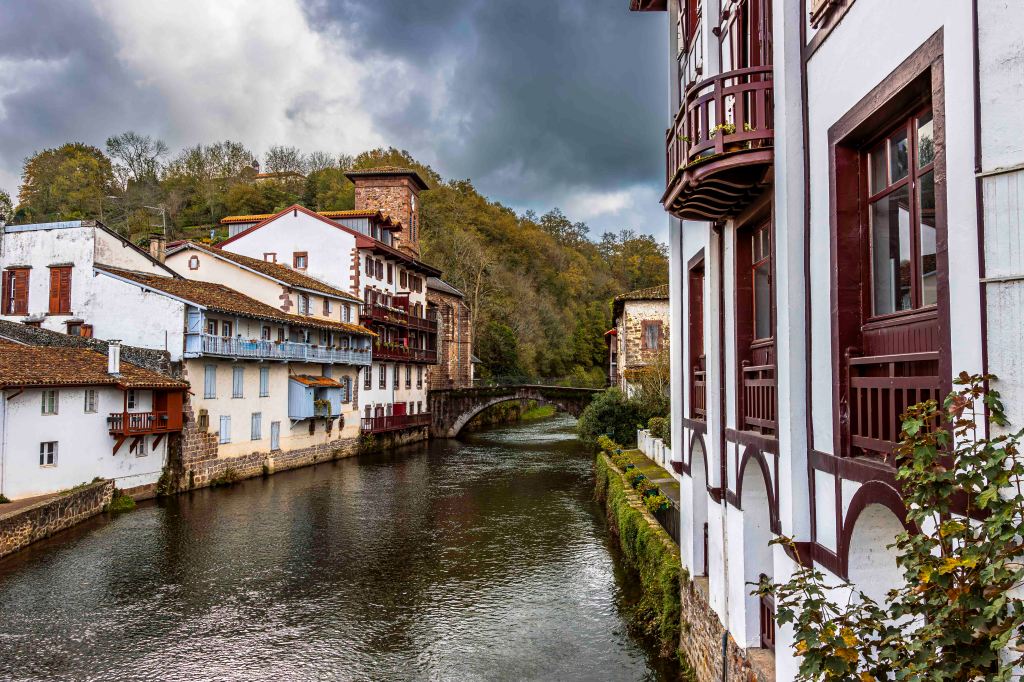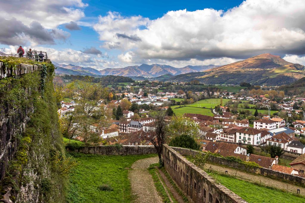 Der Morgen ist wieder grau, erst am Nachmittag wagt sich die Sonne kurzzeitig durch die Wolken. Für einen letzten Halt in Frankreich bleiben wir in Saint-Jean-Pied-de-Port, wieder auf einem offiziellen Platz stehen. Nun sind wir bereits am Fuße der Pyrenäen im Baskenland angekommen. Das schöne mittelalterliche Städtchen ist bis heute ein zentraler Startpunkt für die Pilger des Jakobswegs. Zudem, wie der Name sagt, liegt sie strategisch wichtig am Fuße des Roncevaux-Passes zu Spanien, gesichert von der Burg Mendiguren.