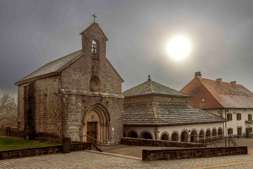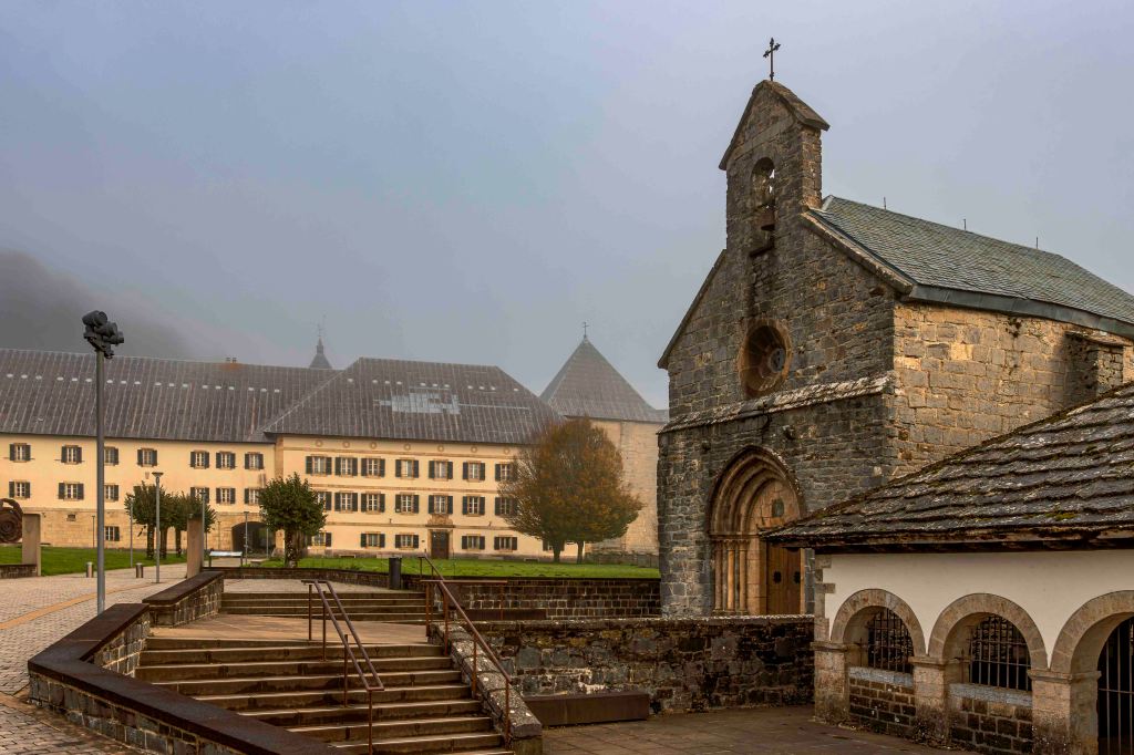 Nachdem wir die Pässe und den Nebel hinter uns gelassen haben, halten wir beim Kloster Oreaga, dem baskischen Namen für Roncesvalles, einem Ort voller Mythen und Geschichte. Als Karl der Große 778 nach einem erfolglosen Feldzug gegen die Mauren hier ankam, fügten baskische Krieger seiner Nachhut eine verheerende Niederlage bei. Auch ist der Ort eine wichtige Station des Jakobsweges, auf dem wir heute schon ein paar Pilger sahen. Und für die Basken ein Symbol, dass kleine Länder gegen große bestehen können.