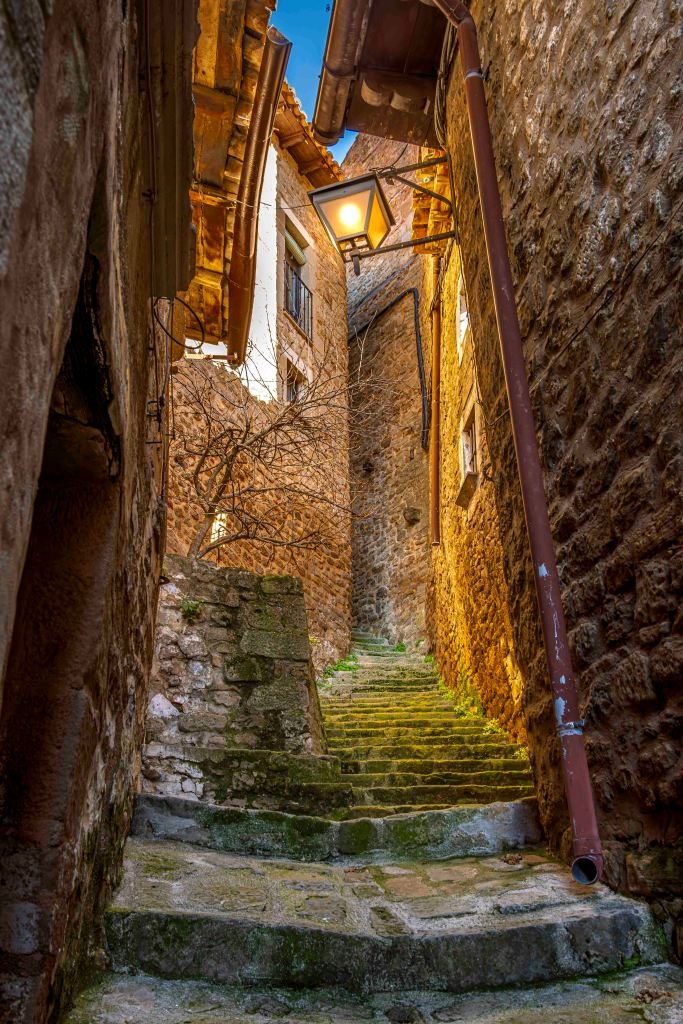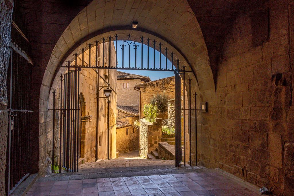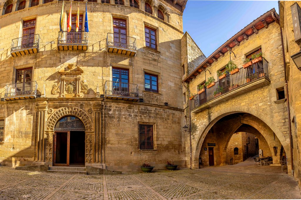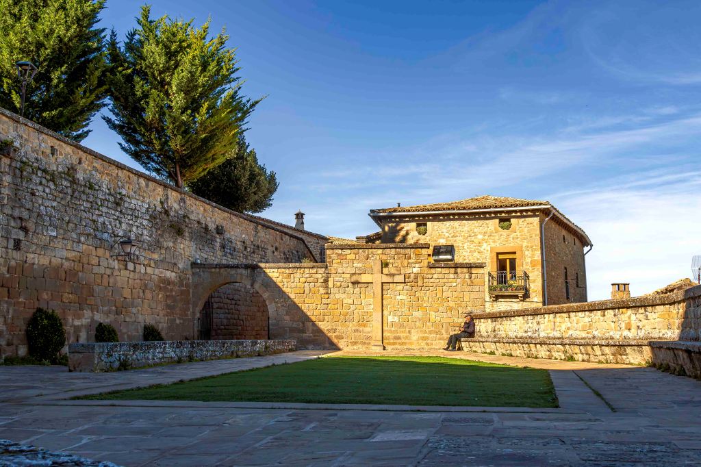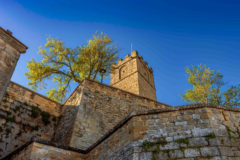 Gern verlassen wir die quirlige Großstadt Pamplona und fahren aufs Land. Schnell kehrt Ruhe ein. Die Ausläufer der Pyrenäen prägen das hügelige Ackerland. Die Sonne strahlt vom blauen Himmel bei kühlen Temperaturen. Auf einem Hügel liegt eines der schönsten Dörfer Spaniens: Sos del Rey Católico. Den Namenszusatz erhielt es durch die Geburt König Ferdinands II. Seine Mutter ritt eigens von Sangüesa in Navarra nach Sos, damit ihr Sohn im Königreich Aragón zur Welt kommt.