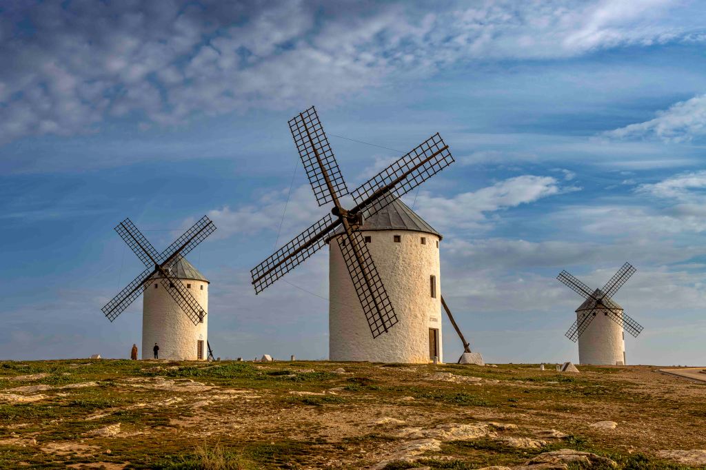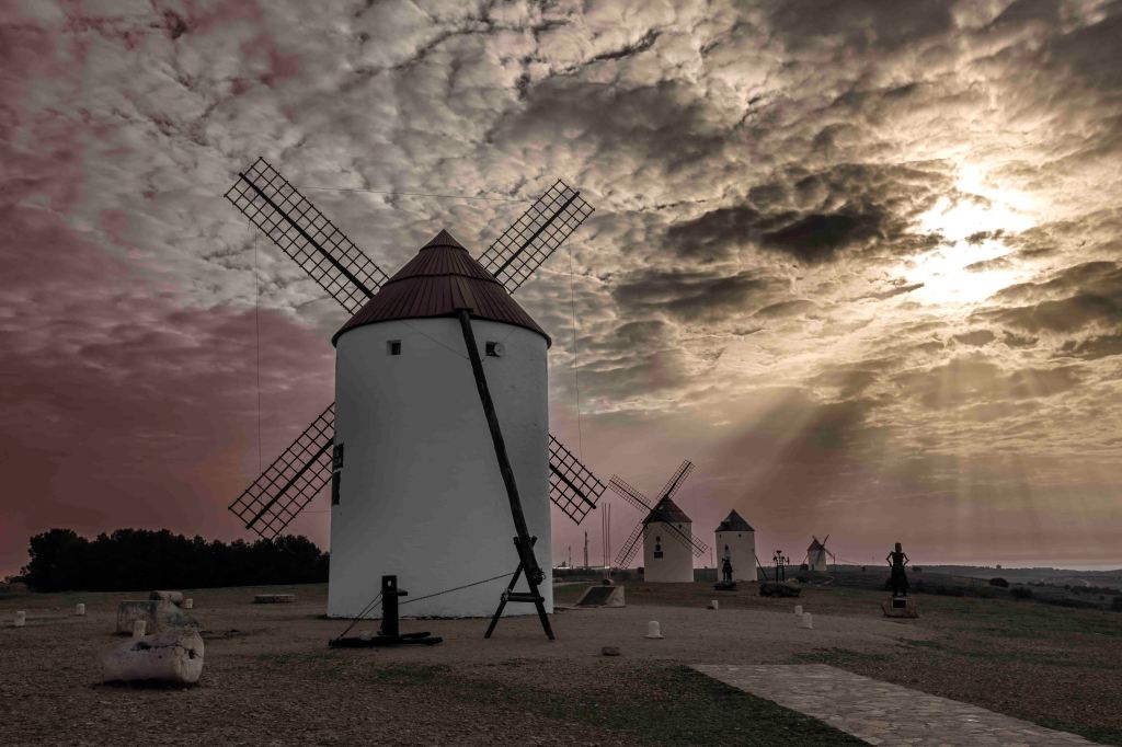 Wer kennt ihn nicht, den Kampf des „Sinnreichen Junkers Don Quijote von der Manche“ mit den Windmühlen. Wir besuchen zwei Orte seiner Gegner, an denen vielleicht der Ritter von der traurigen Gestalt seinen aussichtslosen Kampf führte: Mota die Cuervo und Campo de Criptana. Schön sind sie anzusehen, die „dreißig Riesen“, mit denen unser Held den Kampf aufnahm und leider kläglich scheiterte.