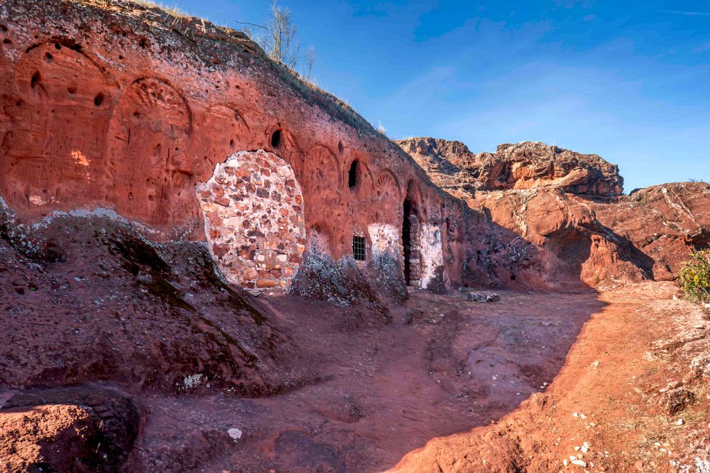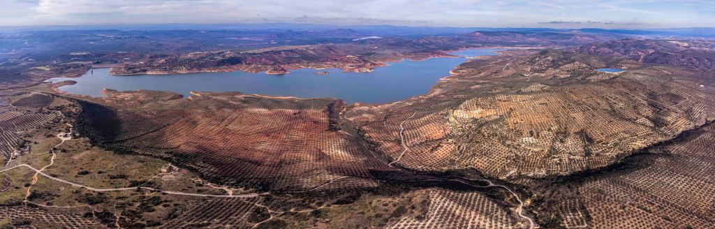Nach den beiden Stadtbesichtigungen „flüchten“ wir in die Einsamkeit an den Embalse del Giribaile, einen großen Stausee inmitten von Olivenhainen, die bis an den Horizont und darüber hinaus reichen. Mittlerweile sind es schon 175 Millionen Olivenbäume in Andalusien, das heißt auf jeden der 8,5 Millionen Andalusier, ob jung oder alt, kommen rechnerisch über 20 Bäume. Und wir wundern uns, dass wir immer nur ein paar Trupps sehen, die ernten. Auch als Peter mit dem Rad, Tempobeschränkung 20 km/h auf dem Radweg!, unterwegs war, sah er nur wenige Arbeiter. Und die dann auch häufig noch mit „Handrührmaschinen“ oder einfachen Stangen hantierten, mit denen die Früchte von den Ästen gequirlt oder geschlagen werden, in ein Netz fallen und dann in die zahlreichen Ölmühlen transportiert werden. Völlig abgeschieden und versteckt liegt eine ehemalige Einsiedelei, über die aber nichts zu erfahren ist.