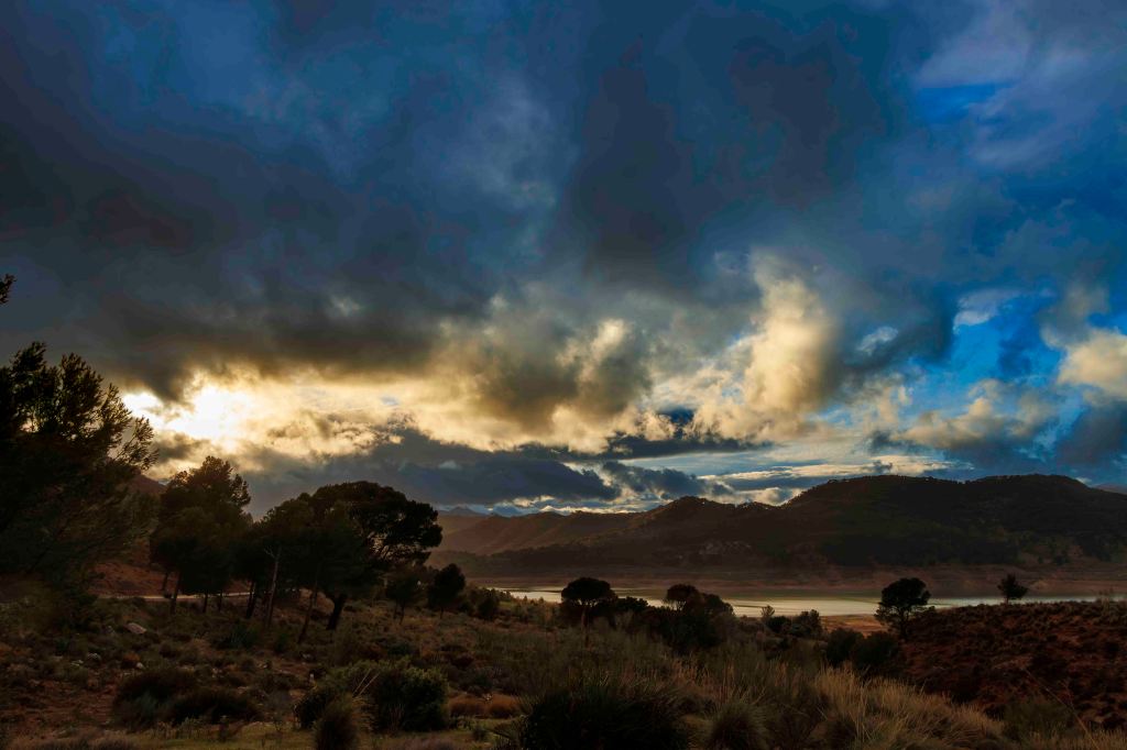 Nach ein paar „Fahrtagen“ erholen wir uns am Embalse del Guadalharce, an dem wir schon während eines Gleitschirmurlaubs im März 2006 waren. Heute ist der Gleitschirm nicht mehr mit dabei. Obwohl dies ein beliebtes Ausflugsziel ist, der Felsenweg Caminito del Rey lockt sogar zu dieser Jahreszeit hunderte von Menschen an, stehen wir hier fast alleine. Am Nachmittag schaut ein zutraulicher Meister Reinecke vorbei, vermutlich in der Hoffnung auf ein paar Leckerbissen. Und ausnahmsweise sind ein paar Wolken am sonst blauen Himmel, was das Fotografenherz freut.