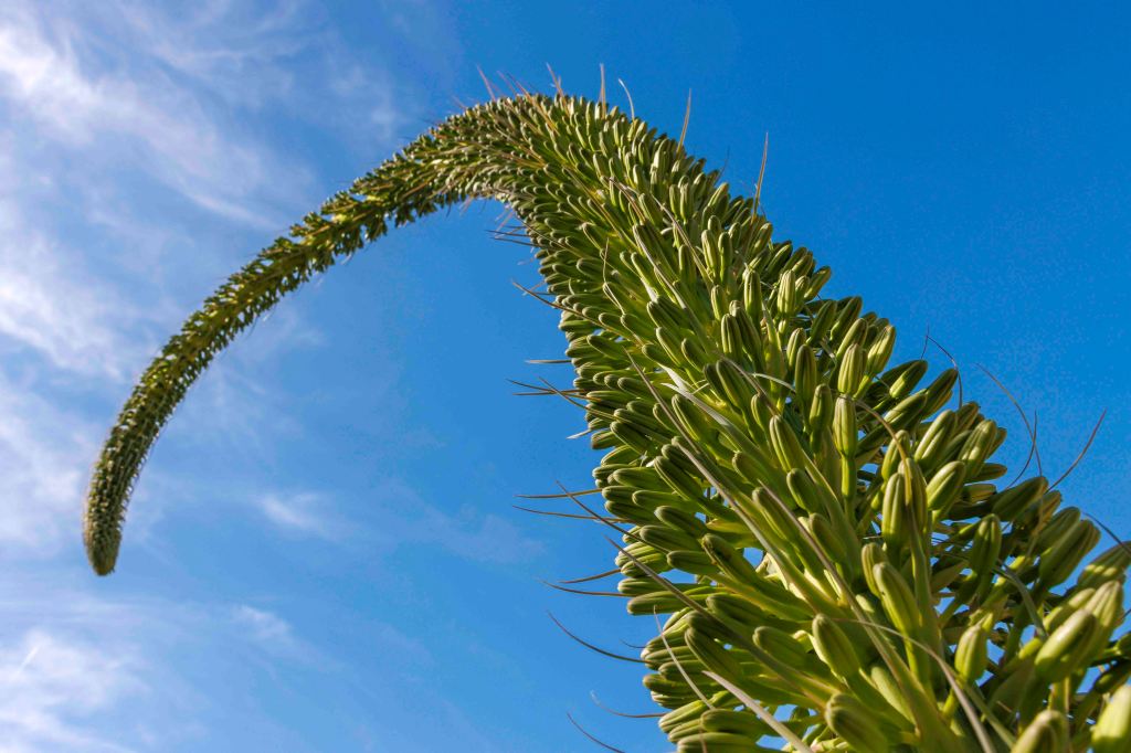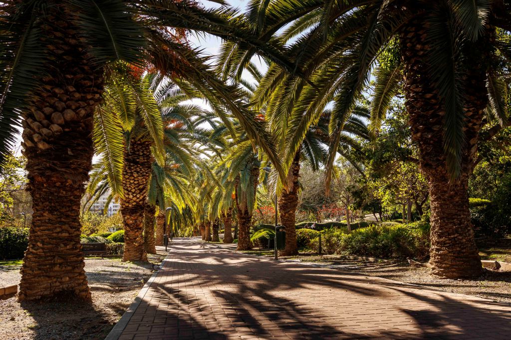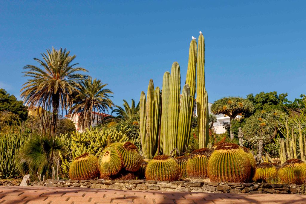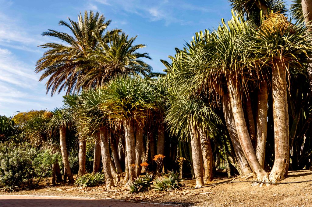 Gleich neben unserem gemütlichen Übernachtungsplatz im Zentrum des Badeortes, obwohl wir ihn mit ein paar Dutzend Wohnmobilen teilen, liegt inmitten der lauten Stadt der Parque de la Paloma; eine Zone der Ruhe, wir uns eine spanische Dame erklärt. Bekannt ist er für seine Palmen und die Kakteen. Und es zeigen sich sogar erste Blüten.