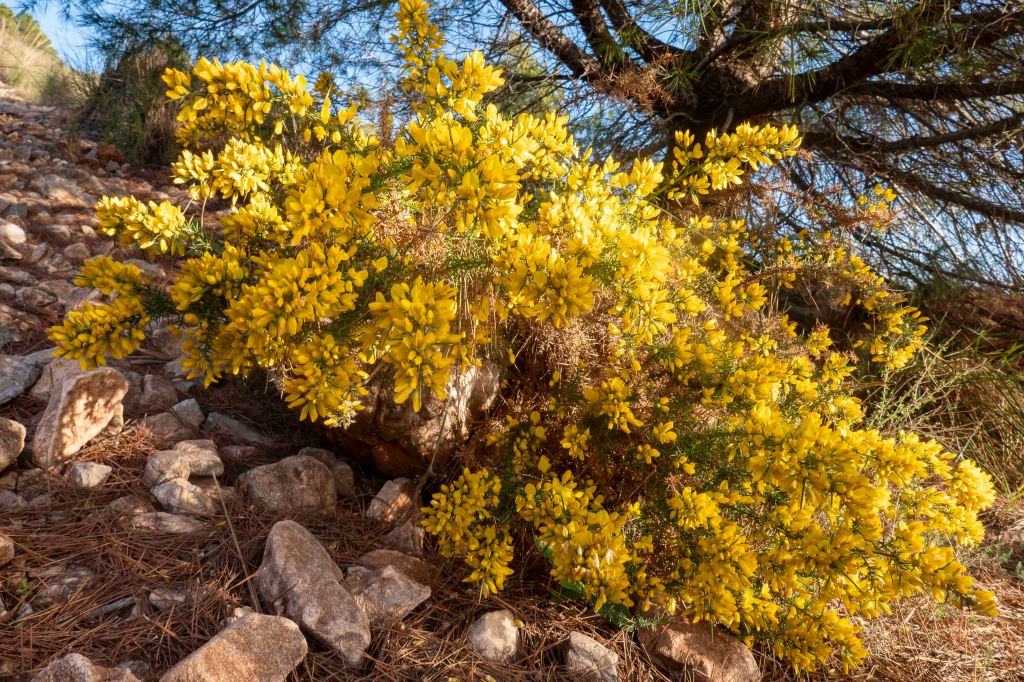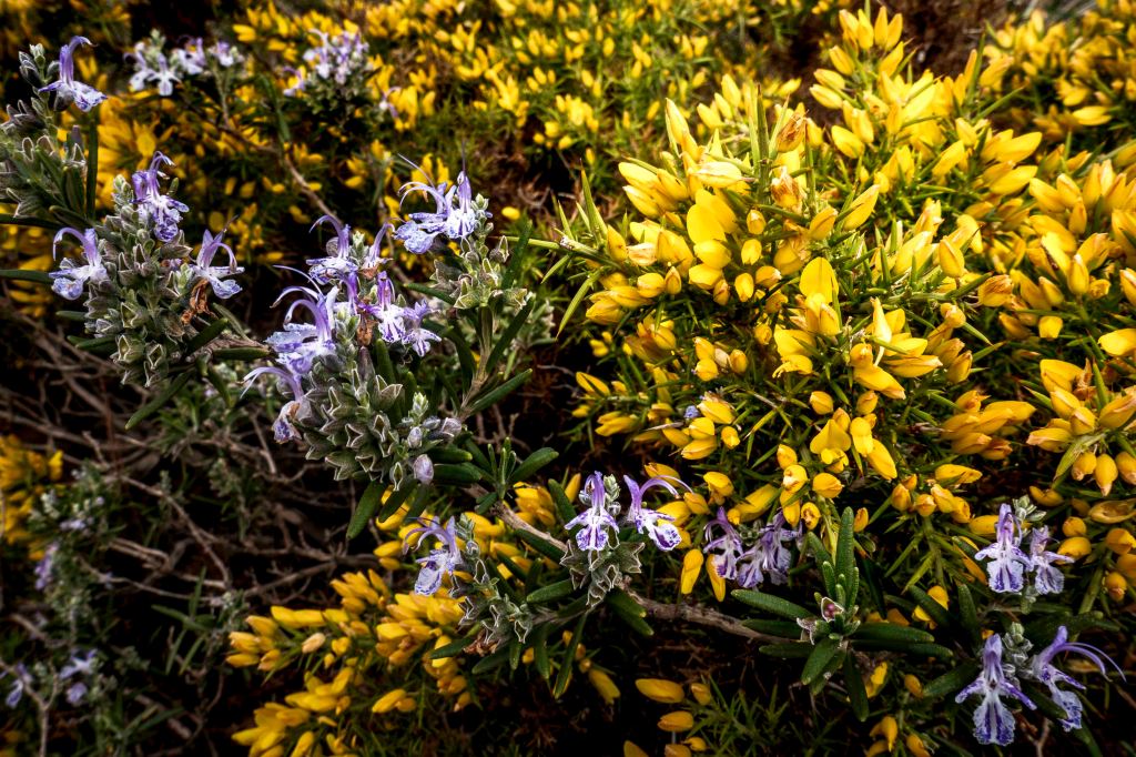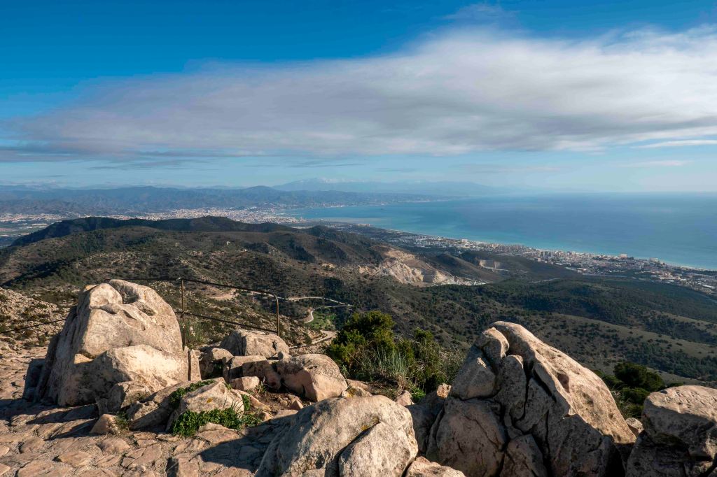 Gleich hinter dem Badeort erhebt sich der 770 m hohen Monte Calamorro, von dem der Blick weit über das Meer und entlang der dicht bebauten Küste reicht. Erst geht es gemütlich zu einer Einsiedelei, in deren Nähe steinzeitliche Zeichnungen gefunden wurden, bevor es das letzt Stück steil zum Felsengipfel hinauf geht. Aber die frühlingshafte Blütenpracht lässt den Schweiß vergessen.