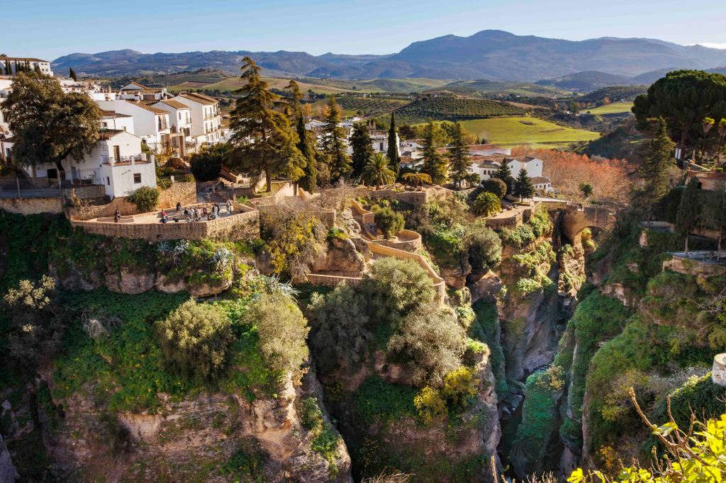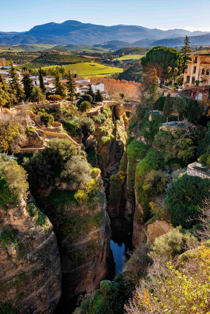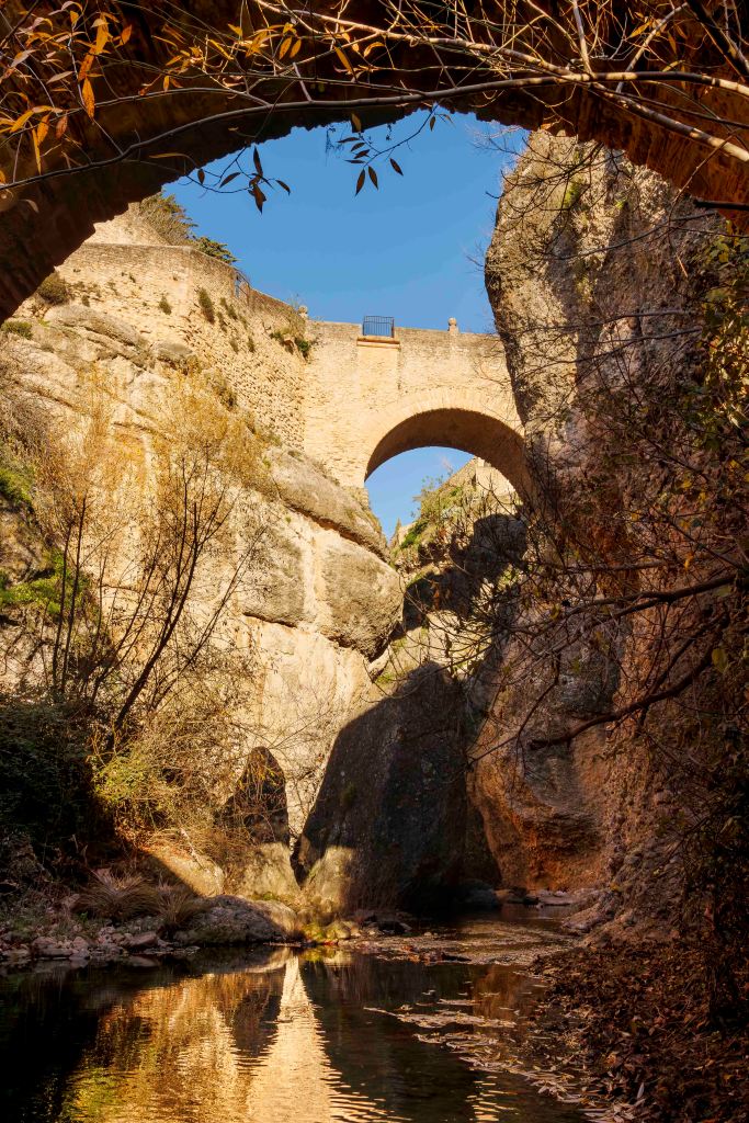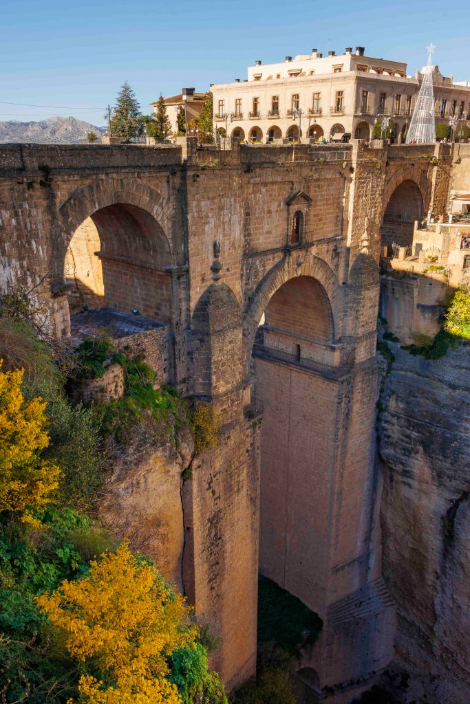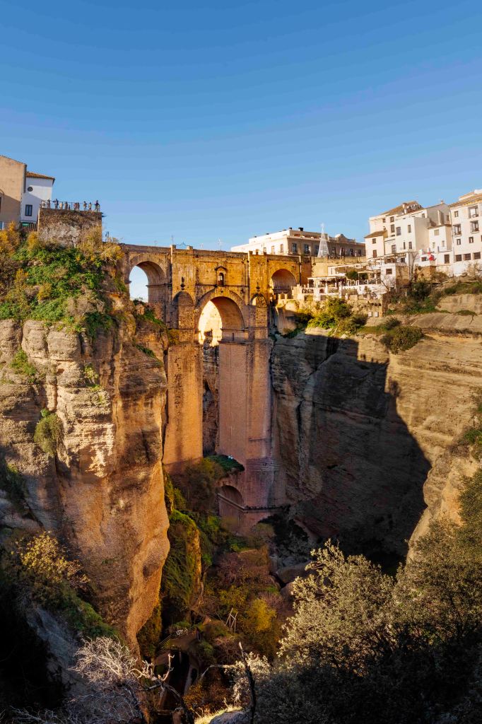 Wir kommen nach Ronda, das der Río Guadalevín durch eine 120 Meter tiefen Schlucht, El Tajo, in die Altstadt La Ciudad und den jüngeren Stadtteil El Mercadillo teilt. Mit einer Höhe von 98 Metern war die Puente Nuevo bei ihrer Eröffnung im 18. Jahrhundert die höchste Brücke der Welt.
