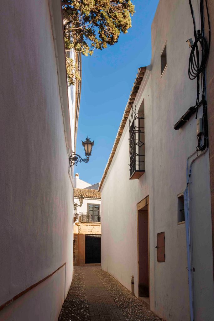 Für den Jahreswechsel fahren wir ins Weiße Dorfe Bornos. Hier dürfen wir ein paar Tage direkt an der Promenda parken. Die Zufahrt zu diesem idyllischen Ort ist eng und steil. Wie werden wir da wieder herauskommen? Ein Schild weist den Weg auf einer mindestens drei Meter breiten Straße durch den Ort. Doch als Peter diesen Weg abläuft, ist die Durchfahrt wegen eines Weihnachtsmarktes gesperrt. Ein weiteres Schild zeigt uns jedoch einen „ungefährlichen“ Weg für Camper entlang der Trasse der ehemaligen Eisenbahn, der uns um das enge Straßengewirr leitet.