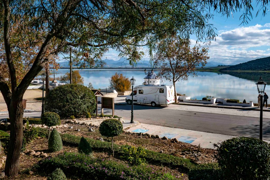 Auf einer schmalen, steilen, aber gut ausgebauten Straße mit wenig Gegenverkehr kurven wir über die Sierra de Grazalema und erreichen eine Höhe von etwa 1200 Metern. Glücklicherweise ist die Straße durch das gleichnamige Dorf breit genug, um einen hübschen Übernachtungsplatz am anderen Ende zu erreichen. Susanne schickt sofort Peter los, um im Käseladen einzukaufen. Es hat sich wirklich gelohnt, sowohl der Einkauf als auch die spannende Fahrt hierher.