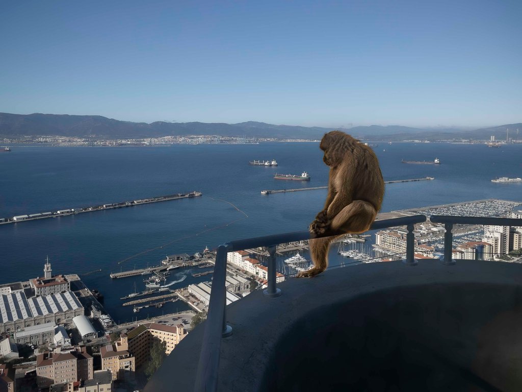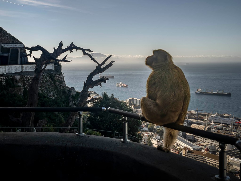 Noch mehr Wohnmobile finden sich am Yachthafen von La Línea de la Concepción ein. Mit so vielen Campern, über den Daumen geschätzt sind es etwa zweihundert, waren wir noch nie zusammen. Aber es ist viel Platz, so stehen wir nicht dicht an dicht und der Blick auf Gibraltar ist es allemal wert. Natürlich steht das britische Überseegebiet auf unserer Wunschliste. Alleine der Zugang zum Vereinigten Königreich ist schon spannend: Zwei Grenzkontrollen und dann der Gang über den Flughafen. Und tatsächlich steht die Ampel auf rot, die Gatter sind geschlossen und eine Maschine startet. Aber der Gang durch die Einkaufsmeile ist eher ernüchternd. Die vielen Läden, es ist zollfreies Gebiet, könnten überall stehen. Besser ist dann die Radtour, diesmal ohne Kontrolle des Ausweises, rund um die Insel. Entlang der östlichen Steilküste ist es ruhiger und beschaulicher, es sind nur ein paar Touristen unterwegs, eine Schulklasse erobert einen Strand. Am Europa Point, dem südlichsten Punkt, steht der Leuchtturm. Und natürlich lockt der Blick vom 426 m hohen Felsen, obwohl der Eintrittspreis doch recht geschmalzen ist. Selbst mit dem Rad ist es streckenweise recht eng, aber zahlreiche Taxen bringen die fussfaulen Touristen über die engen Straßen auf den Berg. Und eigentlich wollte ich die Affen in Ruhe lassen, doch als sie so gemütlich auf dem Geländer sitzen und die Aussicht genießen, kann ich nicht widerstehen.