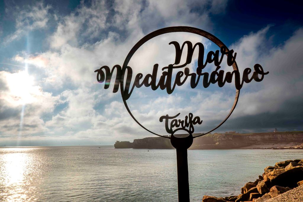 Wir streifen durch Tarifa, es ist windstill und kein buntes Segeltuch lässt sich am Meer blicken. Der Steg zur Isla de Las Palomas, der Zugang ist leider geschlossen, trennt das ruhige Mittelmeer vom wogenden Atlantik, dessen Hinweisschild vermutlich einen verrosteten Fuss hat.