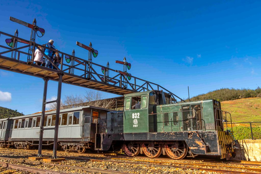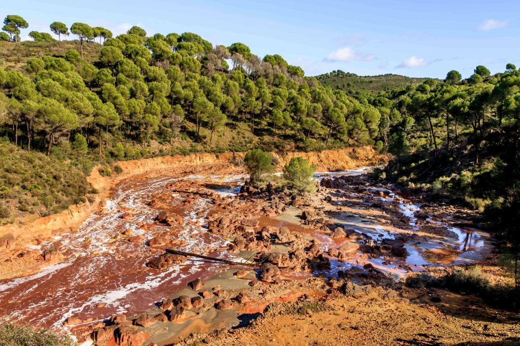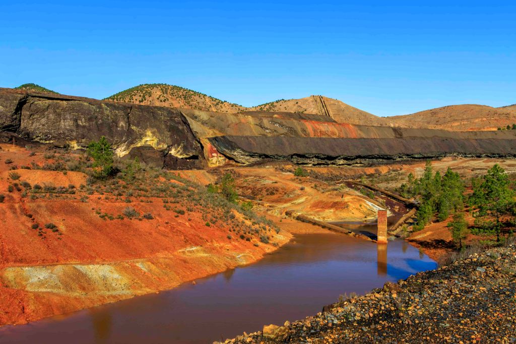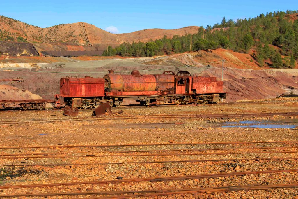 Wir kommen nach Minas de Riotintio, einer über Jahrhunderte hinweg durch intensiven Bergbau geschundenen Landschaf. Schon in der Bronzezeit wurde hier Erz abgebaut und auch die Römer beuteten die Bodenschätze aus. Anfänglich war die Bergbautätigkeit gering. Erst als ein Schwede die Mine vom spanischen Staat pachtete und 1873 ein britisches Konsortium das Bergwerk kaufte, begann die industrielle Ausbeutung. Bereits 1875 wurde eine Eisenbahnverbindung nach Huelva, nach nur zwei Jahren Bauzeit, eingeweiht. (Als wir ankommen, können wir gerade noch auf den Touristenzug aufsprongen.) Dabei waren die Lebensumstände der Bevölkerung katastrophal. Offene Röststufen vergiftete die Luft, viele Einwohner starben. Bei einer Protestkundgebung in 1888 ließen die Eigentümer über 100 Zivilisten durch spanische Soldaten erschießen.