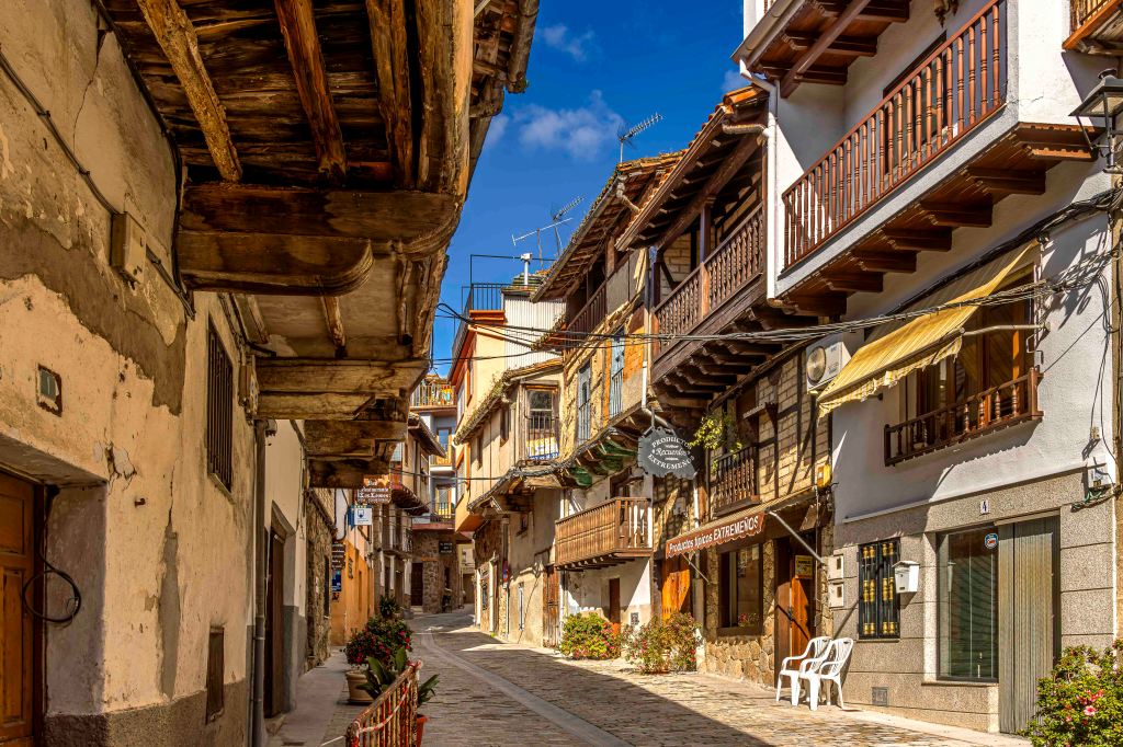 Wir suchen uns einen Parkplatz an der Garganta la Olla und besuchen den gleichnamigen Ort, der das Prädikat schönstes Dorf der Region trägt. Doch auch hier ist die Landflucht zu spüren: Viele der alten Häuser sind unbewohnt und zerfallen zusehends. Dennoch sind ein paar Lebensmittelläden geöffnet, die regionale Produkte anpreisen. Ein leuchtend blaues Haus fällt auf. Die Casas de las Muñecas diente zu Zeiten Karls V. als Bordell für dessen Gefolge. Aus einem späteren Verkauf wurde 1760 dem Pfarrer ein neues Heim geschaffen.