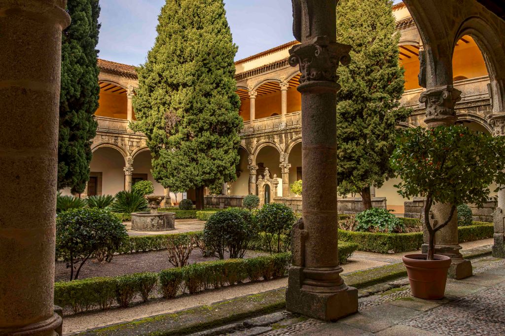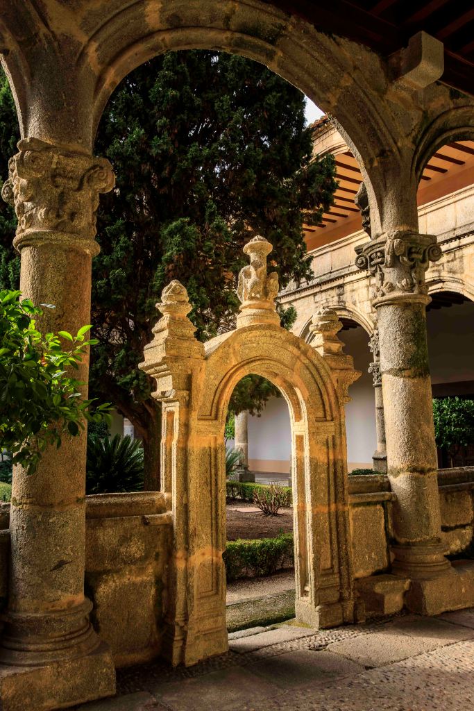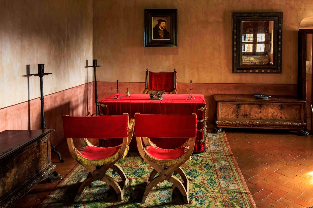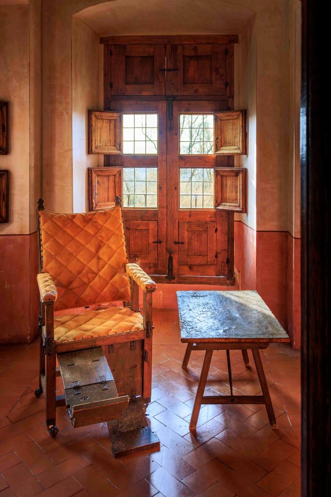 Dann wandeln wir auf den letzten Spuren Karls V., Kaiser des Heiligen Römischen Reiches Deutscher Nation und König des spanischen Weltreiches, „in dem die Sonne nie unterging“. Mit 55 Jahren ging der Kaiser in Ruhestand, übertrug seine Ämter auf seinen Bruder und zog in die Abgeschiedenheit, um den „selbstgewählten Weg zu sich selbst“ zu finden. An das Hieronymiten-Kloster San Jerónimo de Yuste lies er sich seinen wirklich bescheidenen Altersruhesitz mit sieben Zimmern bauen. Auf Komfort mußte er jedoch nicht verzichten: 60 Bedienstete kümmerten sich um ihn. Schwer von der Gicht geplagt, er soll dem Essen und Trinken kräftig zugesprochen haben, reiste er in einer speziellen Sänfte, hatte einen eigenen „Rollstuhl“ und von seinem Schlafzimmer aus eine Verbindungstür in die angrenzende Klosterkirche. So konnte er vom Bett aus die Messe verfolgen. Spannend zu lesen und gut geschrieben ist der 2024 erschienene Roman von Arno Geiger „Reise nach Laredo“. Karl V. bricht aus der Eintönigkeit des Klosters aus und begibt sich mit seinem unehelichen Sohn Geronimo sowie Honza und Angelita, einem jungen Cagot-Geschwisterpaar, auf eine abenteuerliche Reise.