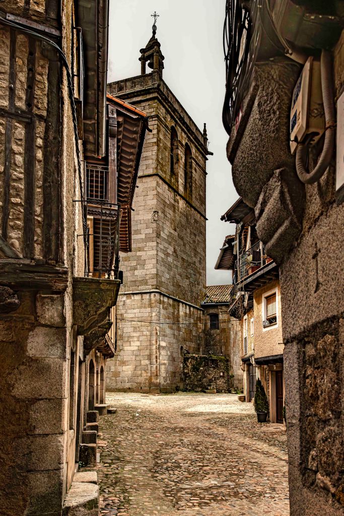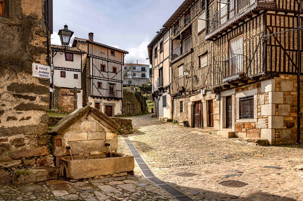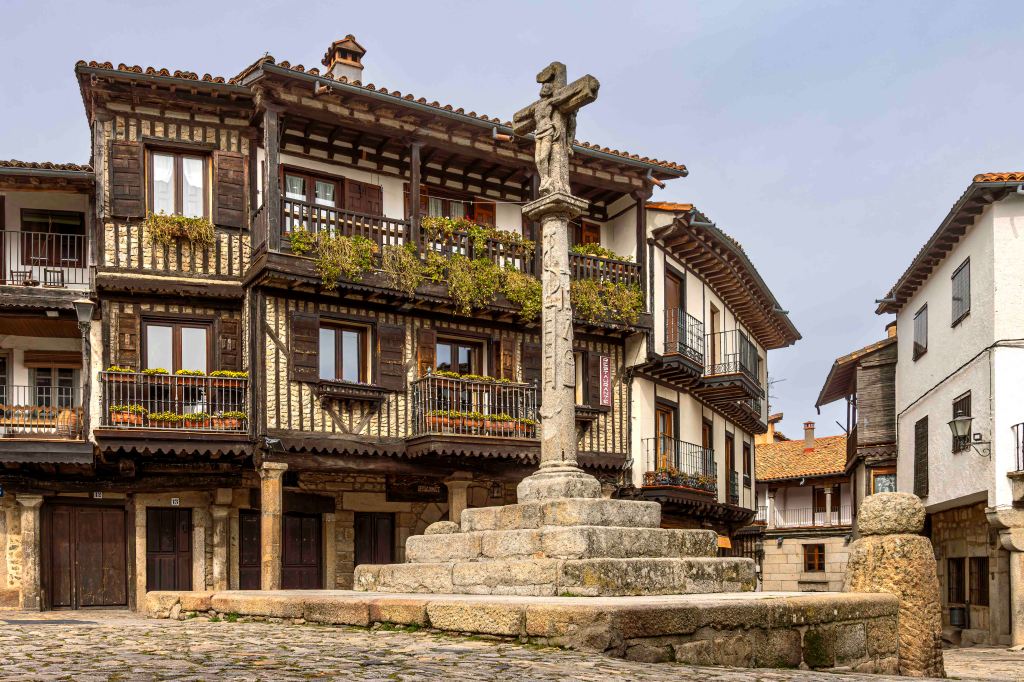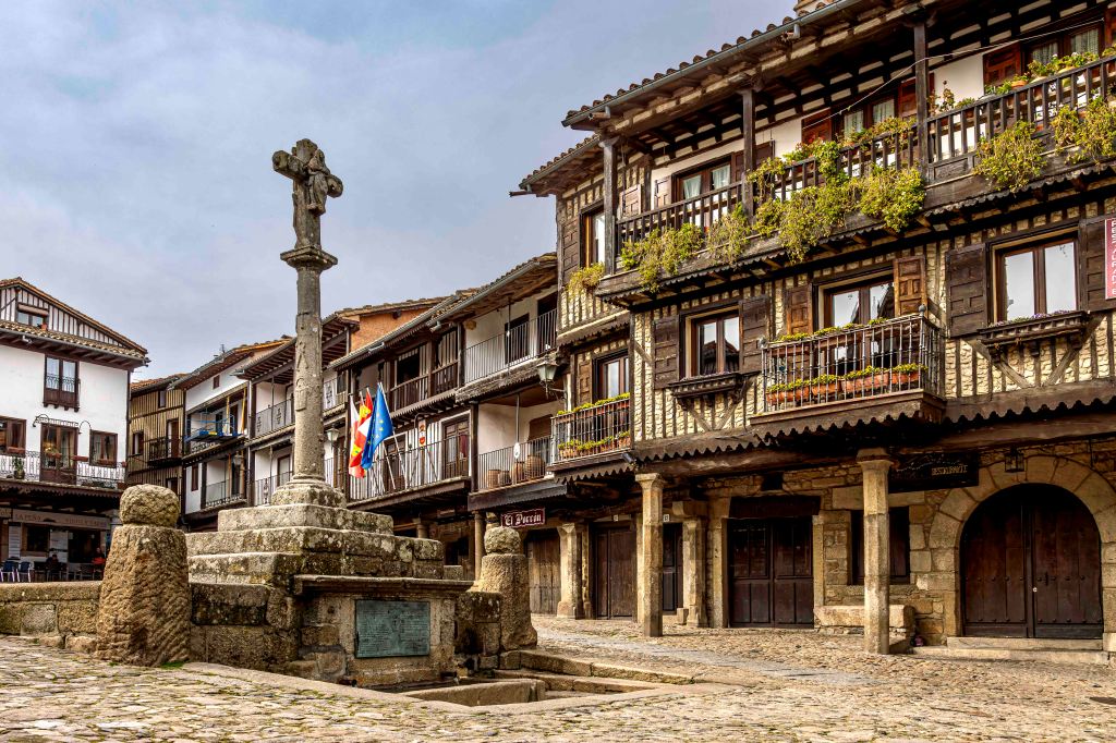 Nachdem wir das Tal des Río Batuecas über eine serpentinenreiche Straße verlassen und den Puerto del Portillo erklommen haben, erreichen wir das pittoreske Bergdorf La Alberca. Es liegt inmitten der der Sierra de Francia auf 1045 m. Wunderschön ist die Plaza Mayor mit ihren Bruchstein- und Fachwerkhäusern und dem steinernen Kreuz.