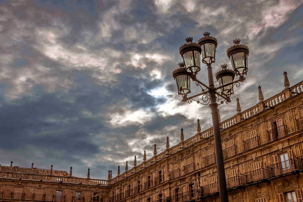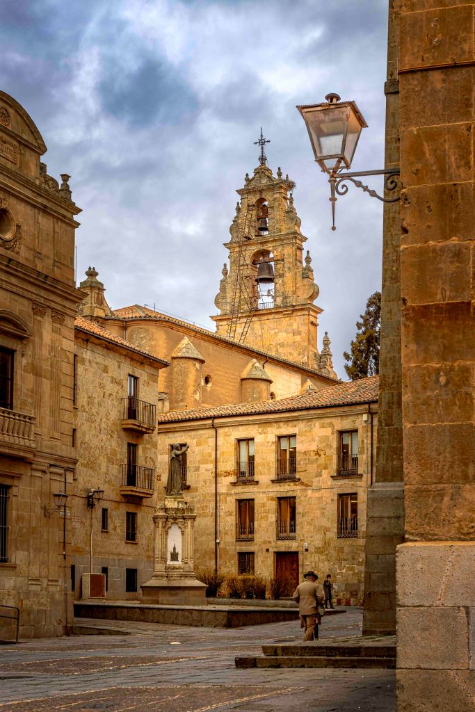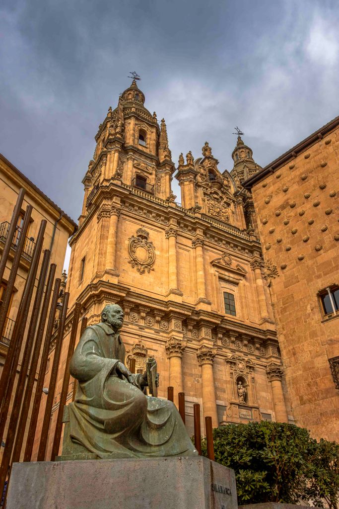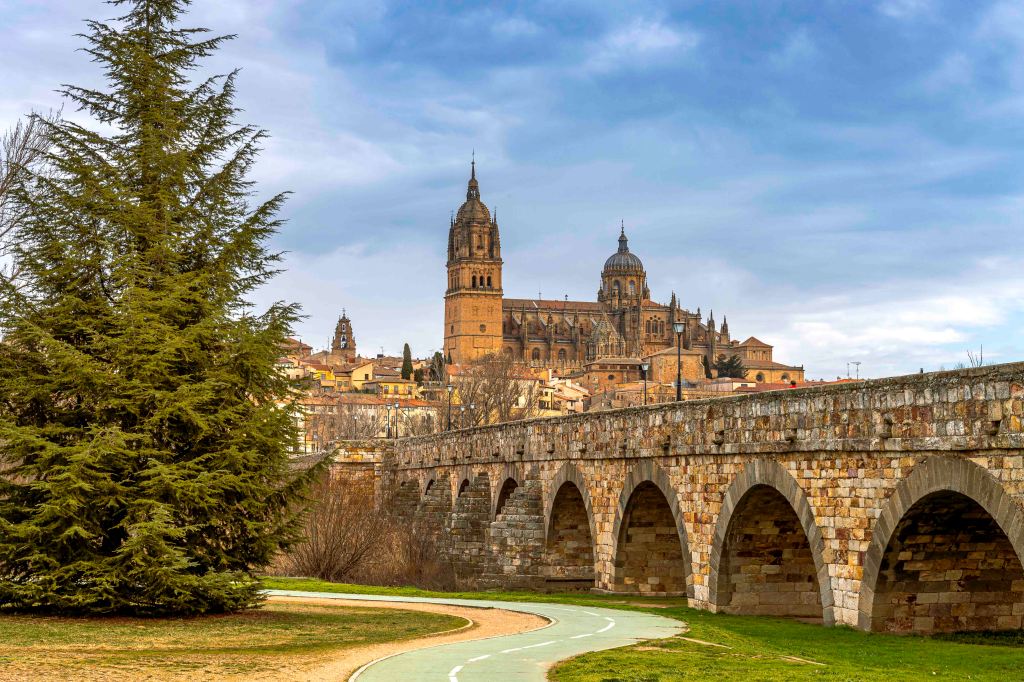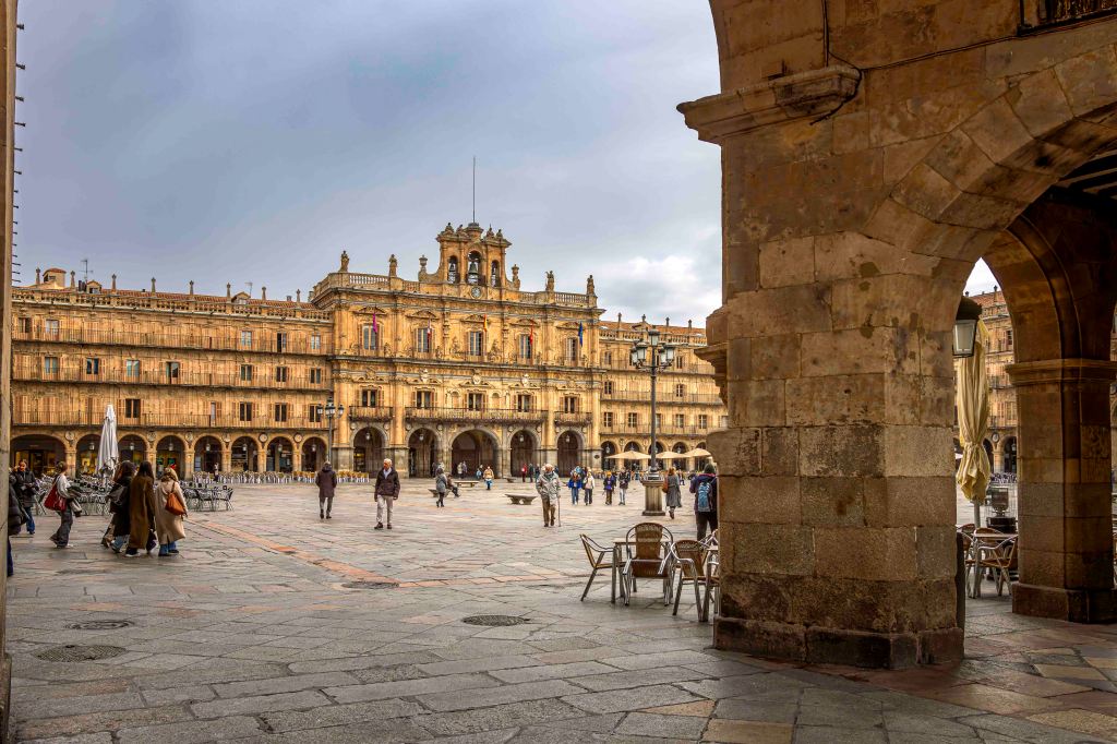 Die Straße führt uns durch weite, noch im Winterschlaf liegende Kornfelder und halb verlassene Dörfer weiter nach Norden. Dann kommen wir nach Salamanca, Großstadt und Hauptstadt der Region Kastilien und León. Mit Blick auf die Altstadt und den Río Tormes finden wir in einem geplanten Neubaugebiet ohne Häuser einen guten und ruhigen Stellplatz. Ein Spazierweg entlang des Fusses und über eine Römische Brücke führt in das Zentrum der geschichtsträchtigen Stadt. Mächtig erhebt sich der Glockenturm der Neuen Kathedrale. Gegenüber ein Gebäude der Universität, die älteste noch bestehende in Spanien. Der Stadtpalast ist geschmückt mit 300 Jakobsmuscheln, als Symbol der Santiago-Pilgerschaft. Das Schmuckstück ist die prächtige Plaza Mayor. Einst fanden hier Stierkämpfe statt, bis Philipp V. den Einwohnern wegen ihrer Loyalität 1729 den Platz neu gestalten lies. Die Monumentalität und Pracht erschlägt einen fast, was für Gegensatz zur der ärmlichen Landschaft rundherum. Nach zwei Tagen ziehen wir weiter auf der Suche nach Einsamkeit.