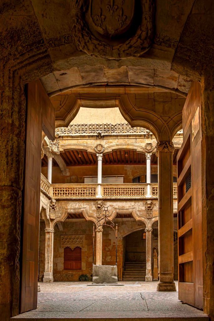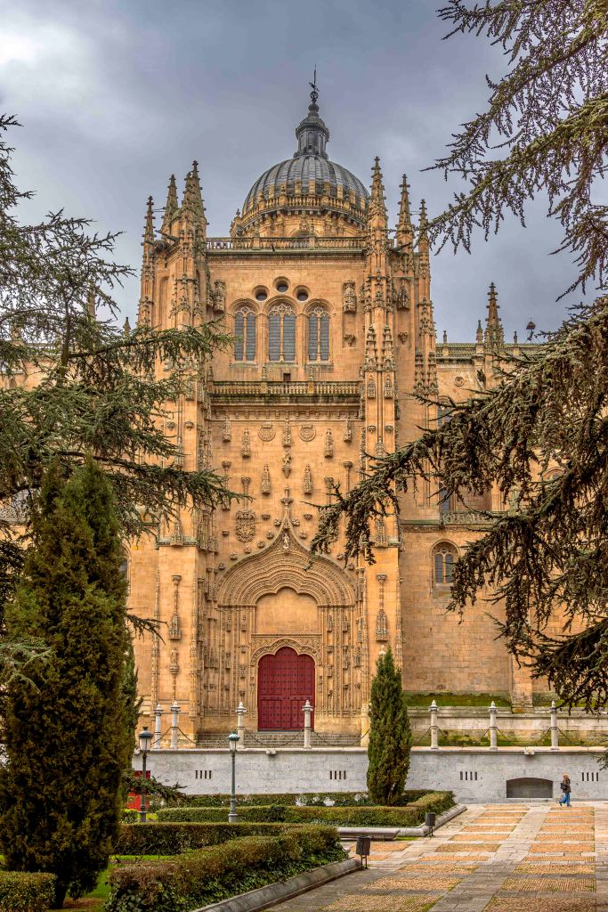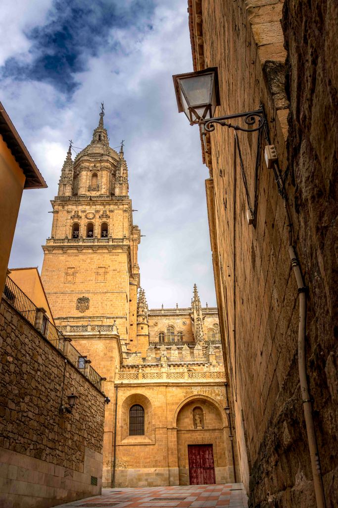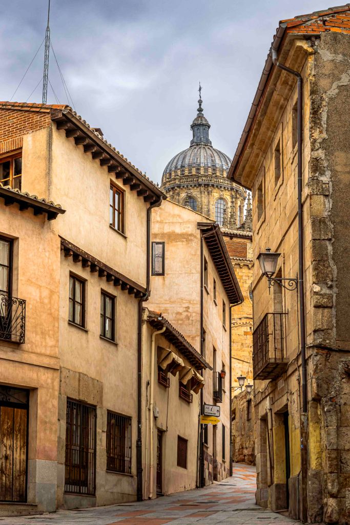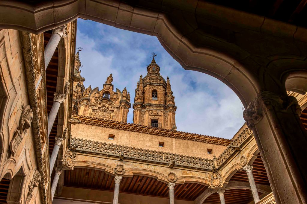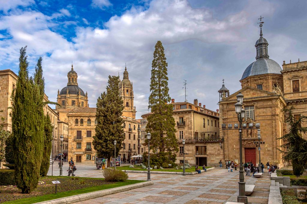Die Straße führt uns durch weite, noch im Winterschlaf liegende Kornfelder und halb verlassene Dörfer weiter nach Norden. Dann kommen wir nach Salamanca, Großstadt und Hauptstadt der Region Kastilien und León. Mit Blick auf die Altstadt und den Río Tormes finden wir in einem geplanten Neubaugebiet ohne Häuser einen guten und ruhigen Stellplatz. Ein Spazierweg entlang des Fusses und über eine Römische Brücke führt in das Zentrum der geschichtsträchtigen Stadt. Mächtig erhebt sich der Glockenturm der Neuen Kathedrale. Gegenüber ein Gebäude der Universität, die älteste noch bestehende in Spanien. Der Stadtpalast ist geschmückt mit 300 Jakobsmuscheln, als Symbol der Santiago-Pilgerschaft. Das Schmuckstück ist die prächtige Plaza Mayor. Einst fanden hier Stierkämpfe statt, bis Philipp V. den Einwohnern wegen ihrer Loyalität 1729 den Platz neu gestalten lies. Die Monumentalität und Pracht erschlägt einen fast, was für Gegensatz zur der ärmlichen Landschaft rundherum. Nach zwei Tagen ziehen wir weiter auf der Suche nach Einsamkeit.
